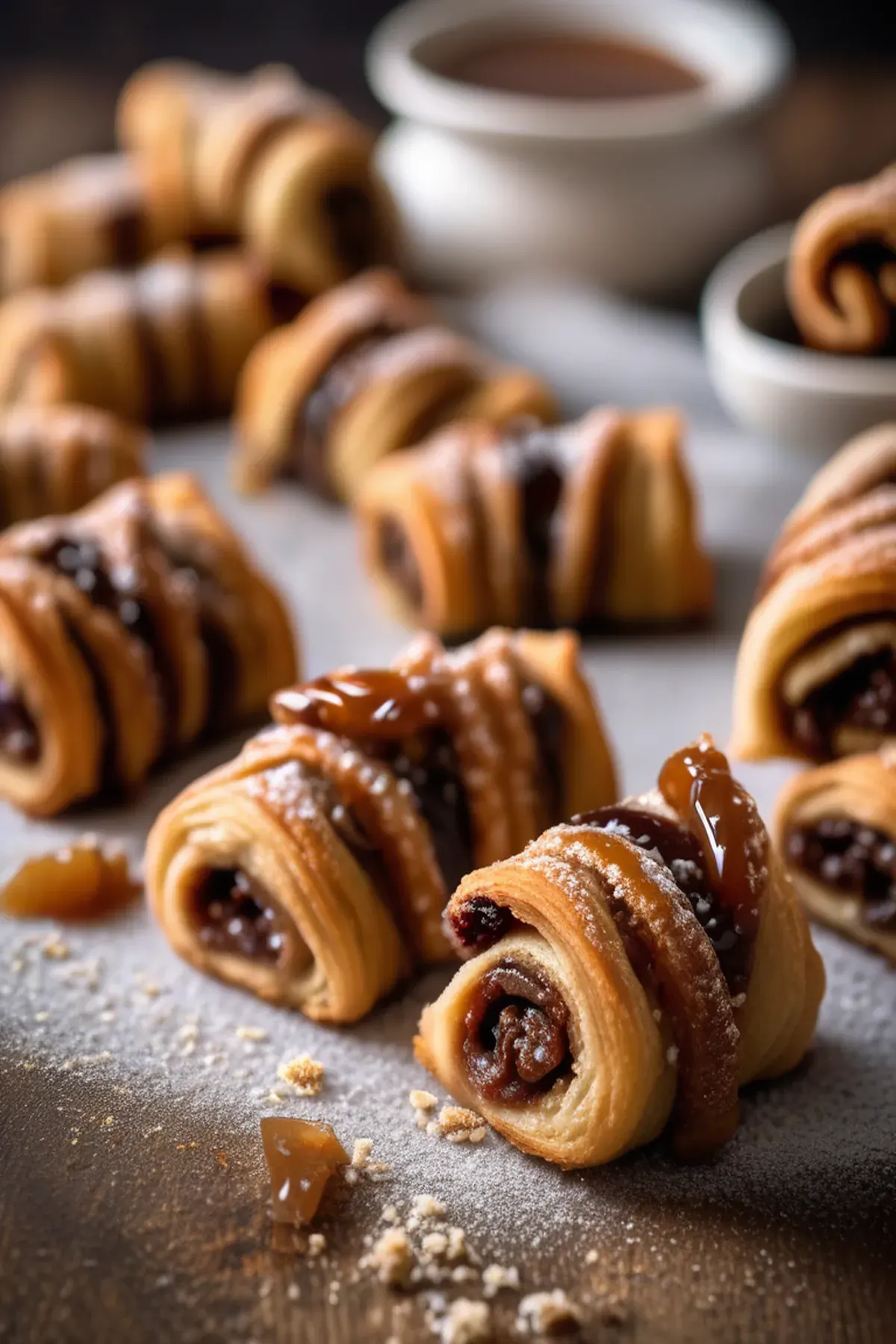 Indulge in the sweet, gooey filling of dulce de leche, wrapped in a flaky, buttery pastry rugelach.