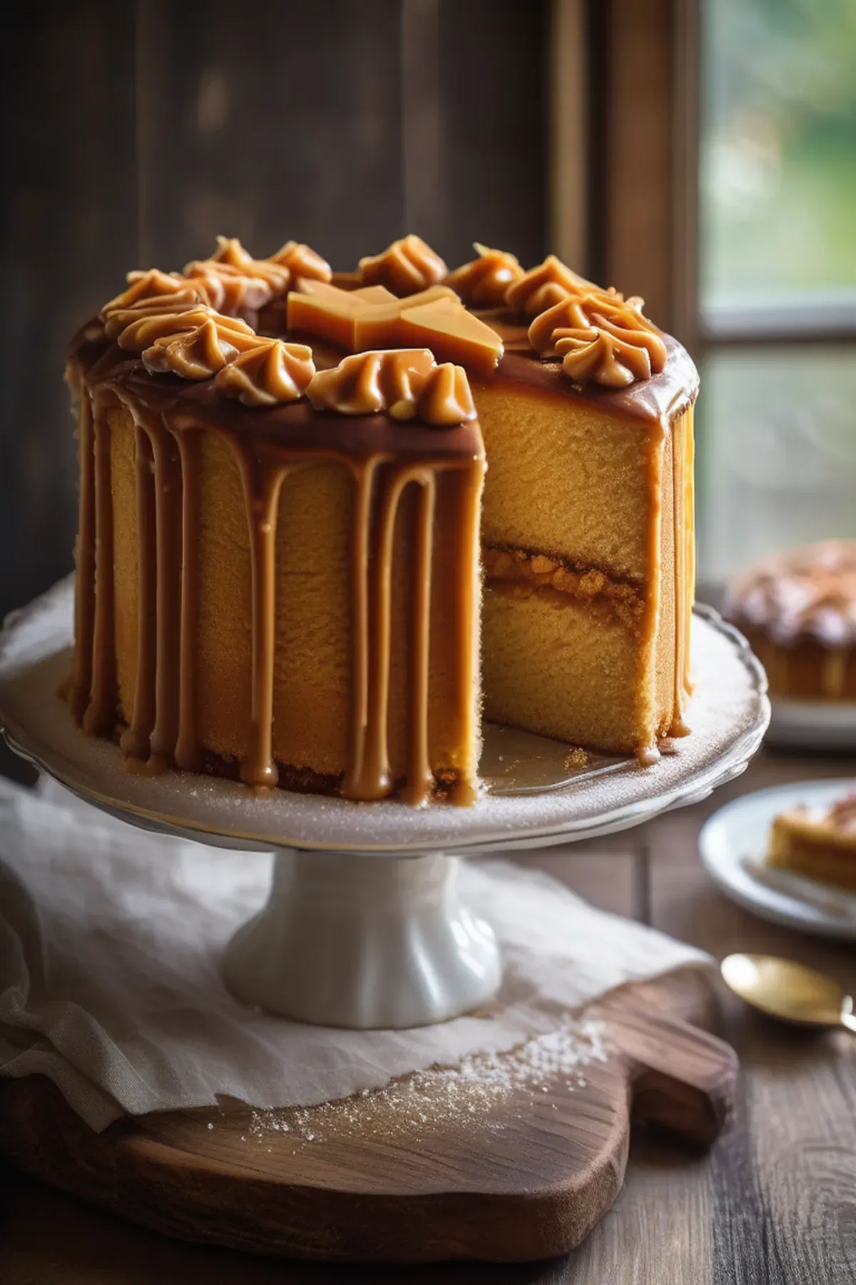 Spoon dulce de leche over the bottom half of the cake, then top with the other half.