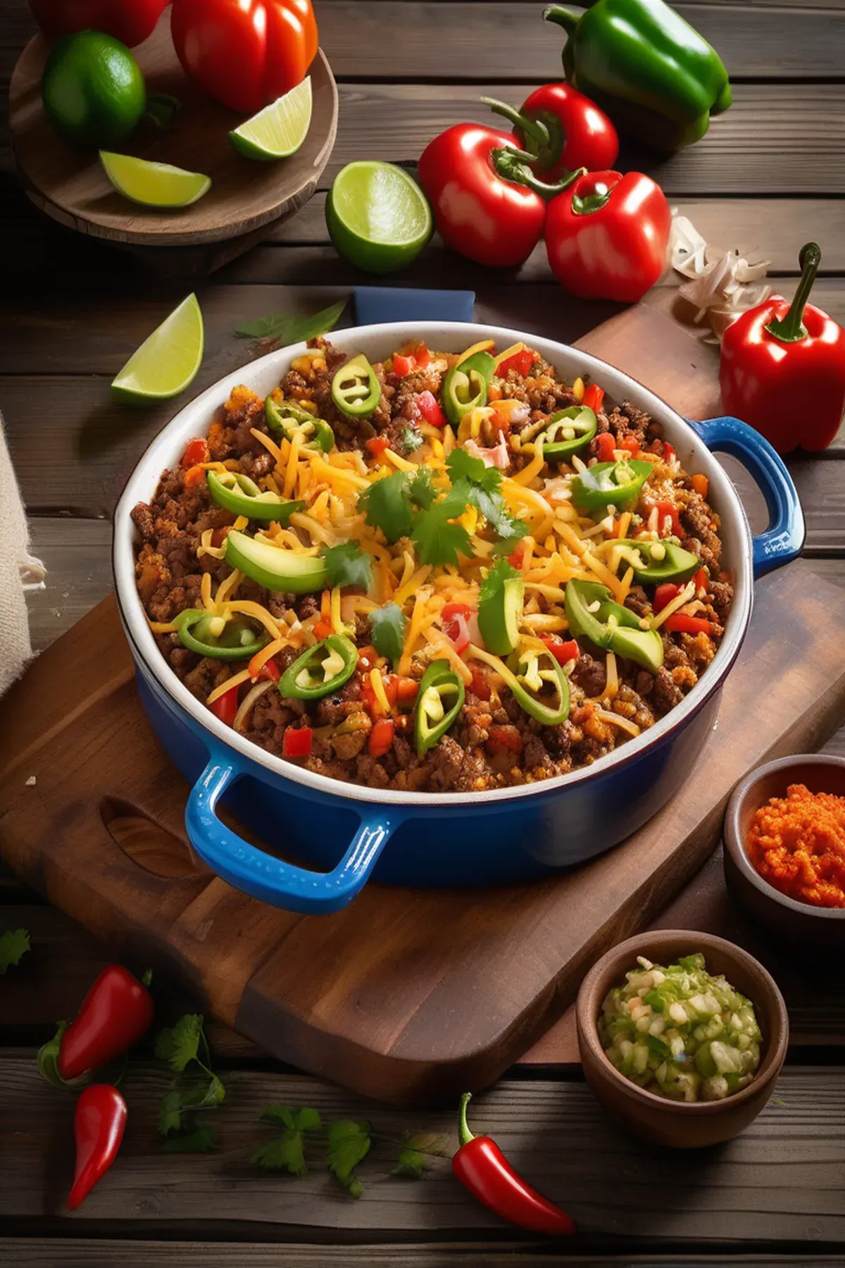 You've got to try this fantastic taco casserole! It's one of my go to weeknight dinners because it comes together in under an hour and feeds a crowd without breaking the bank. Ground beef mixed with fresh garlic, peppers, and a kick of chili spice creates layers of incredible flavor, and the melted cheddar cheese on top is absolutely irresistible. Plus, all those fresh tomatoes and bell peppers packed into every bite mean you're sneaking in plenty of vitamin C and fiber. This is comfort food that actually feels a little bit nutritious, and honestly, that's my favorite kind of meal to serve my family.