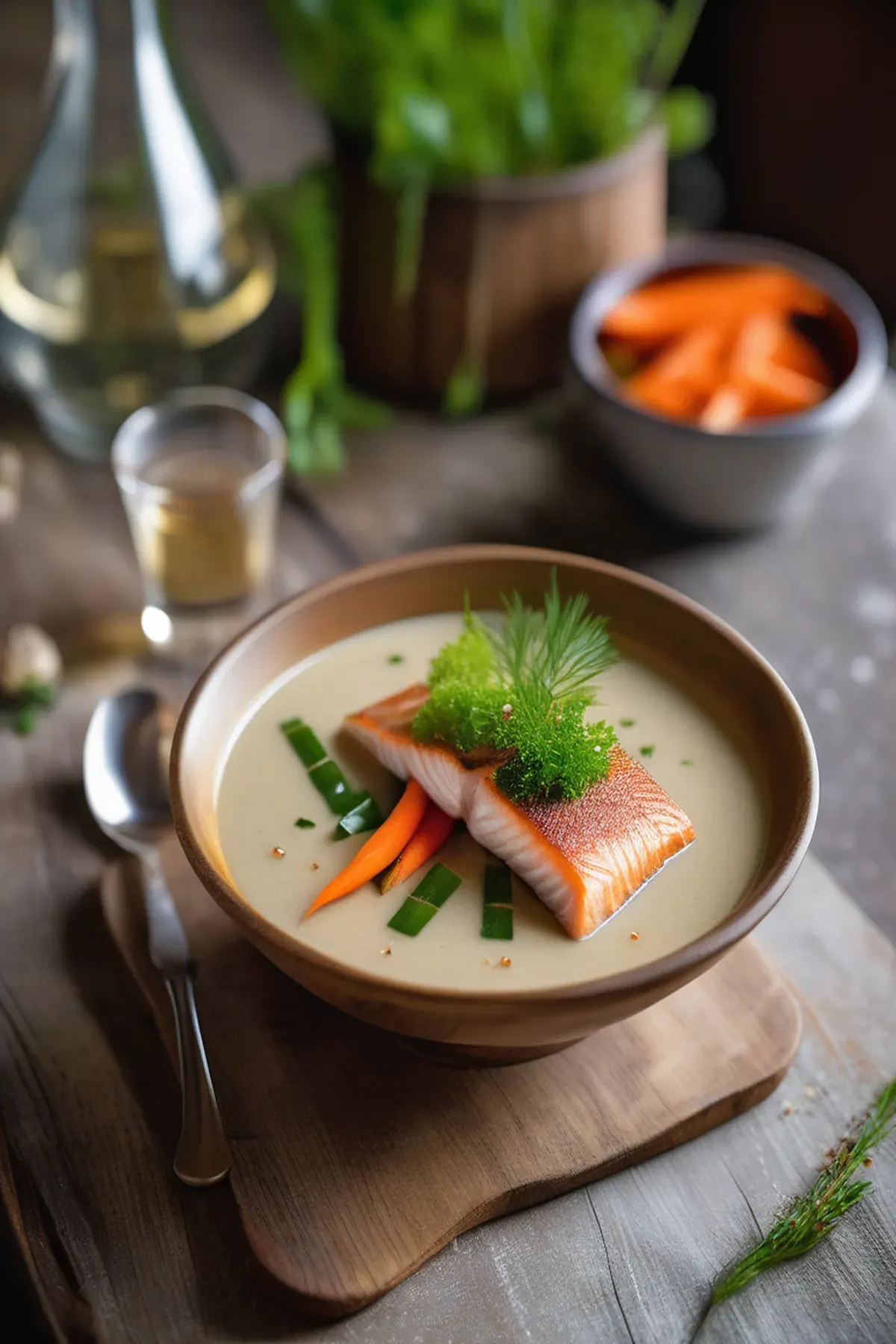 A rich and creamy fish soup originating from France, made with a delicate fish broth and flavorful vegetables.