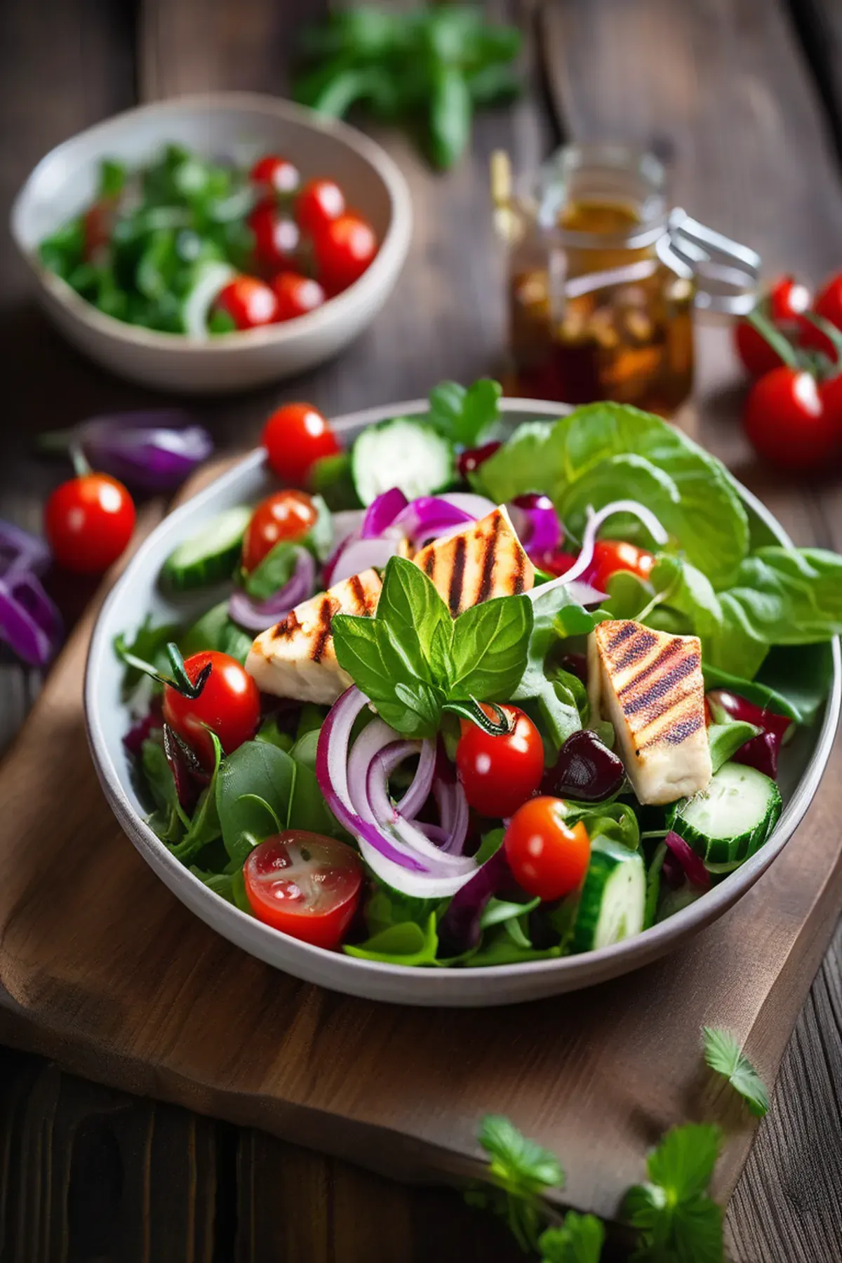A refreshing summer salad featuring the iconic Cypriot cheese, halloumi, in a zesty French-inspired dressing.