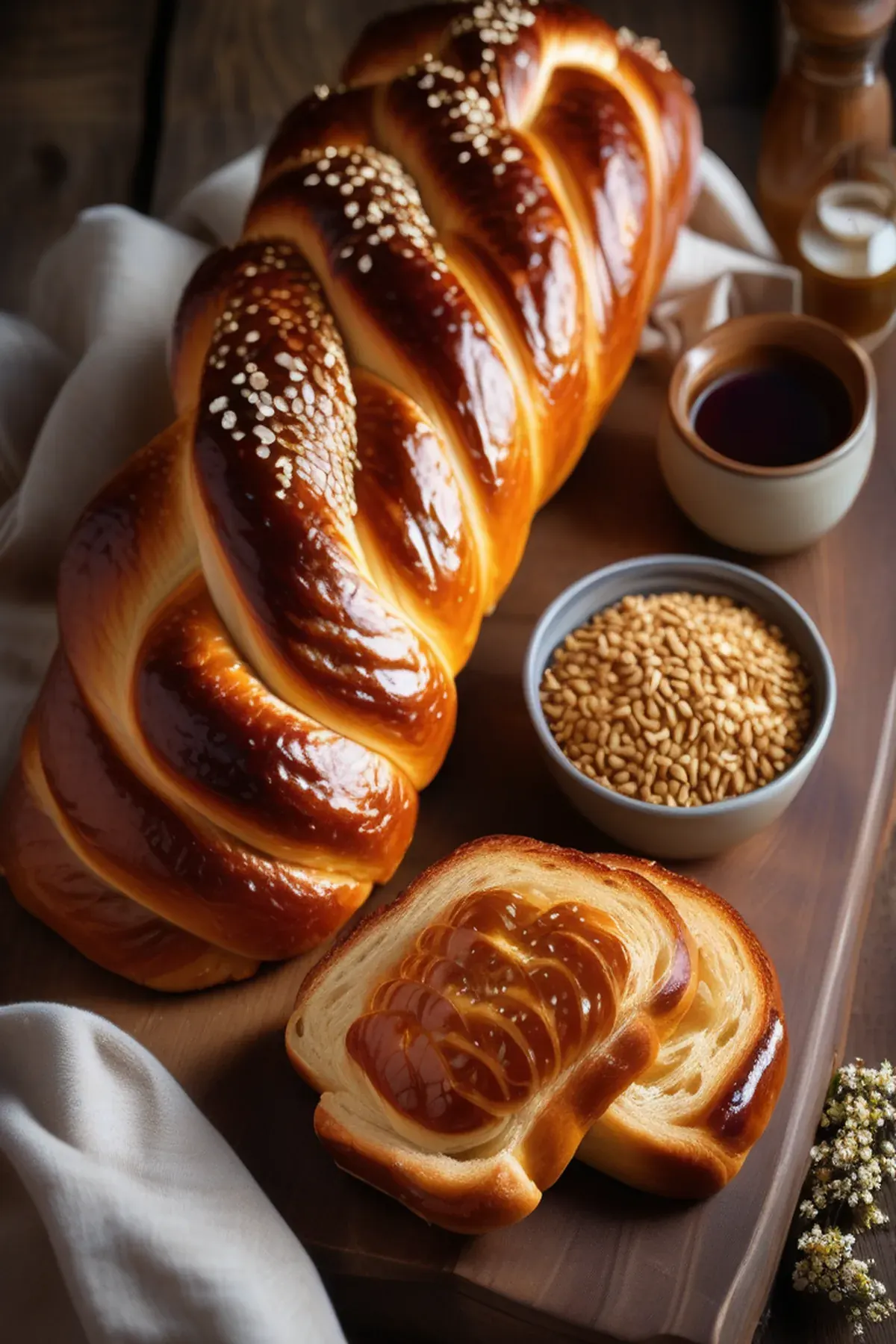 A beautifully braided Jewish bread with a tender, slightly sweet crumb and glossy golden crust, perfect for Shabbat celebrations or special occasions.