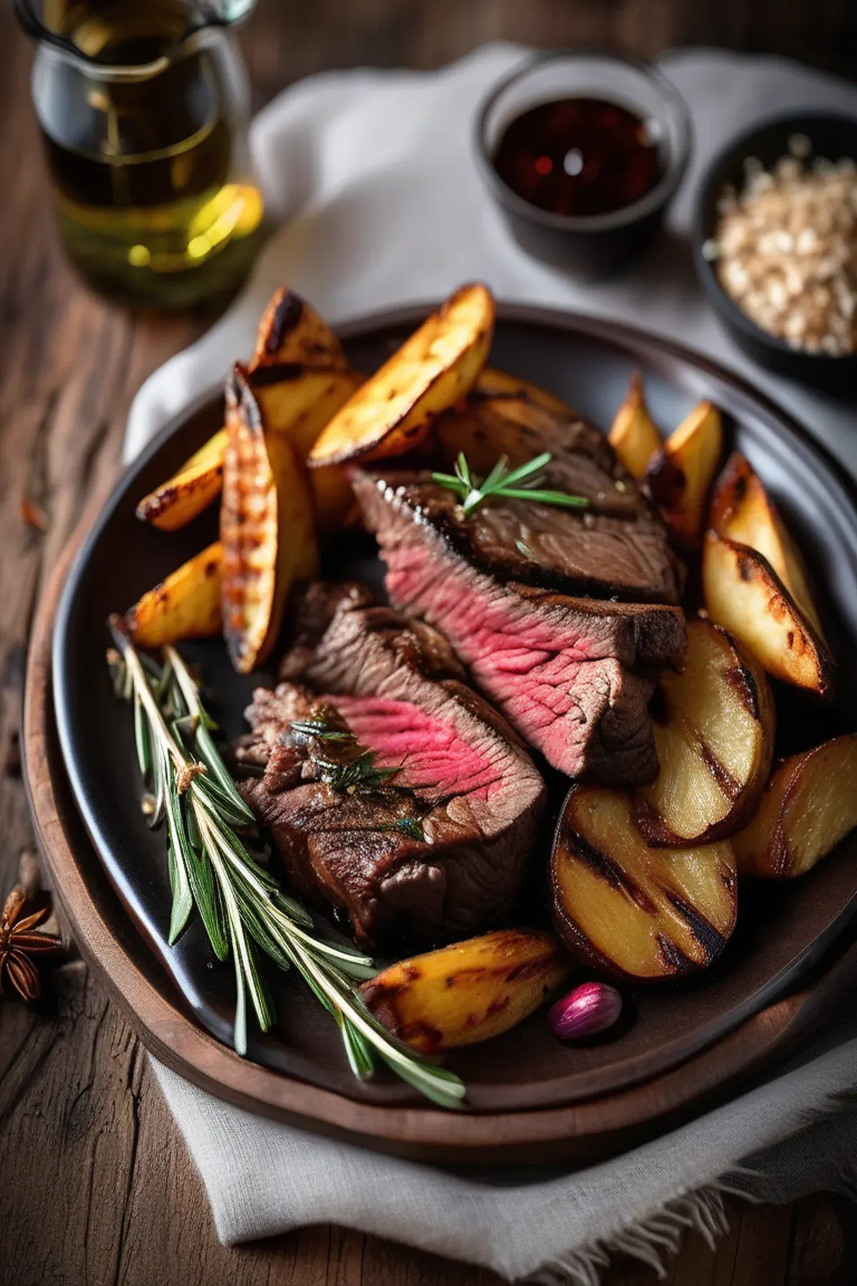 Grilled Bison with Crispy Potato Wedges