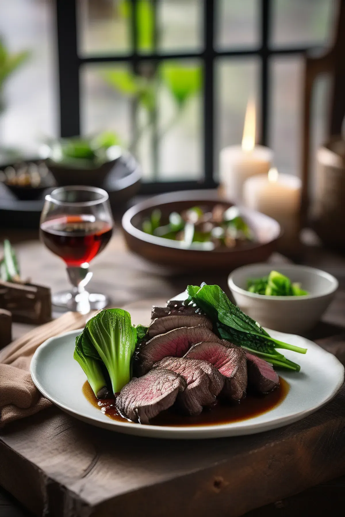 Grilled Bison with Bamboo Shoot and Ginger Glaze