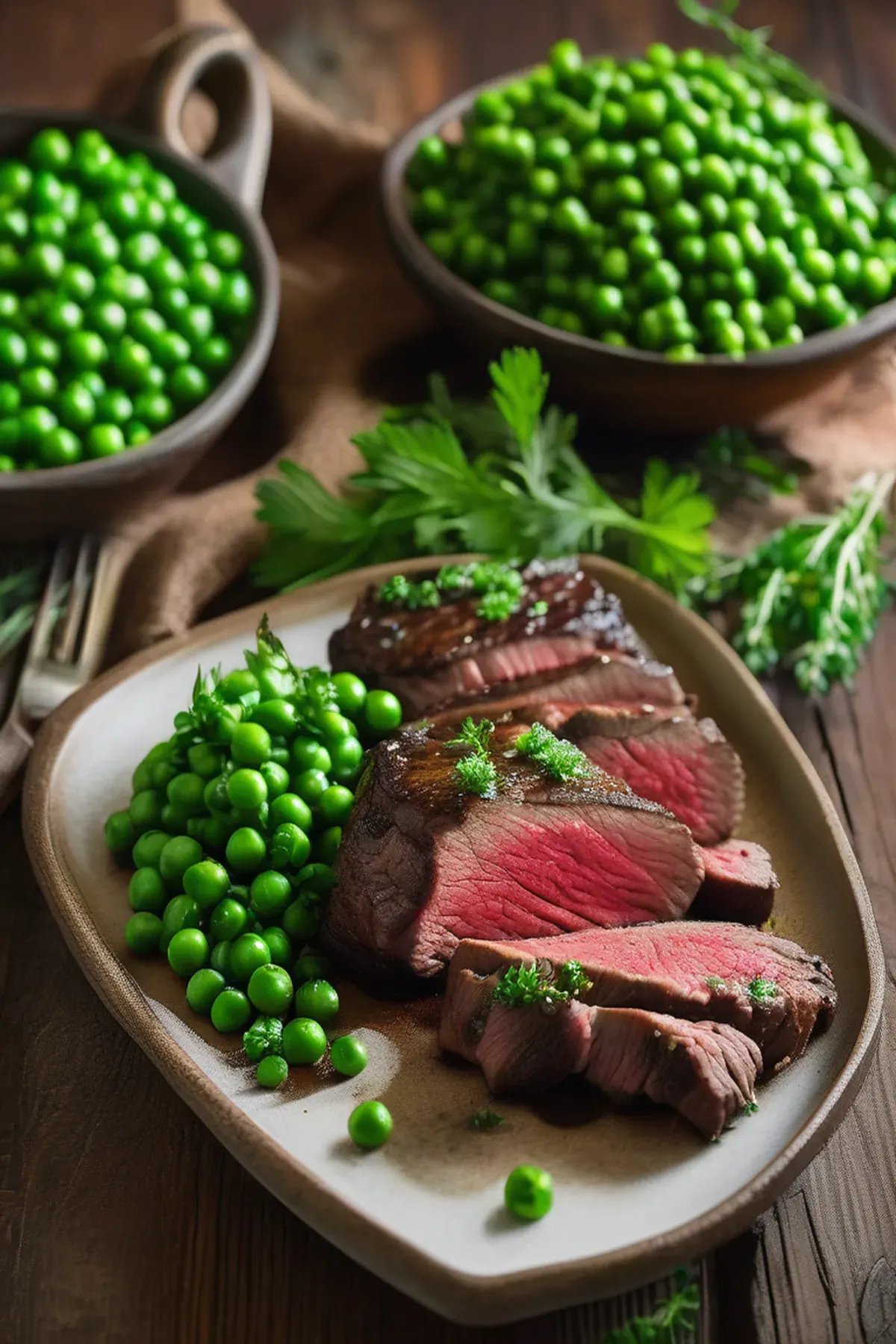 Divide the peas among serving plates alongside the steaks. Squeeze fresh lemon juice over everything just before serving.