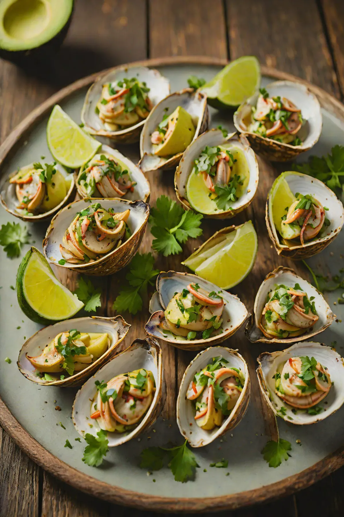 Top each clam with a spoonful of mashed avocado, pressing gently so it nestles into the clam.