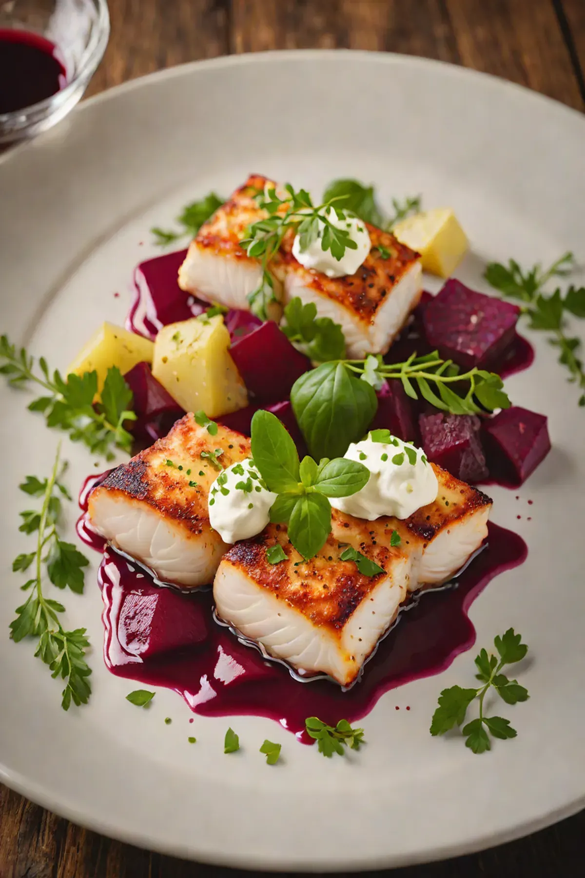 Grilled Cod with Beetroot and Horseradish Cream