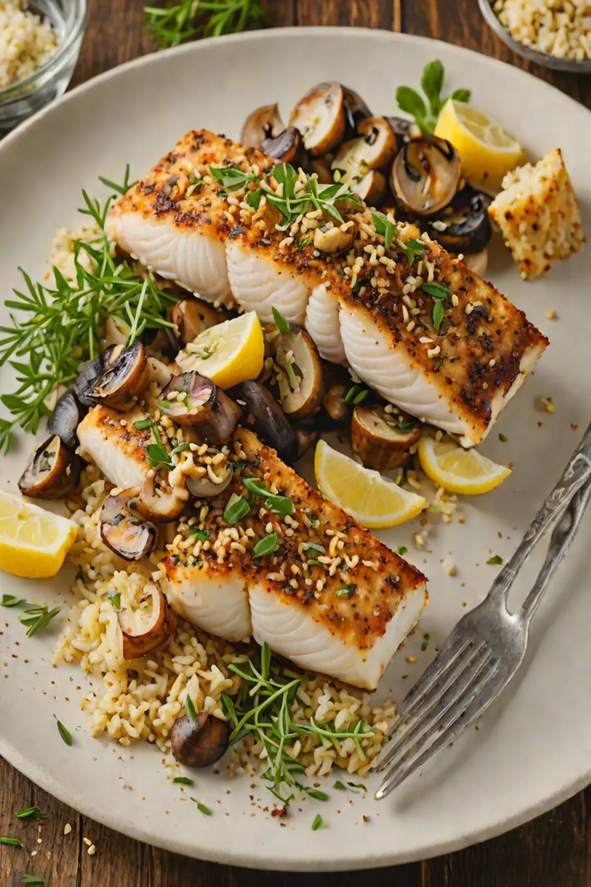Grilled Cod with Garlic Mushroom Crust