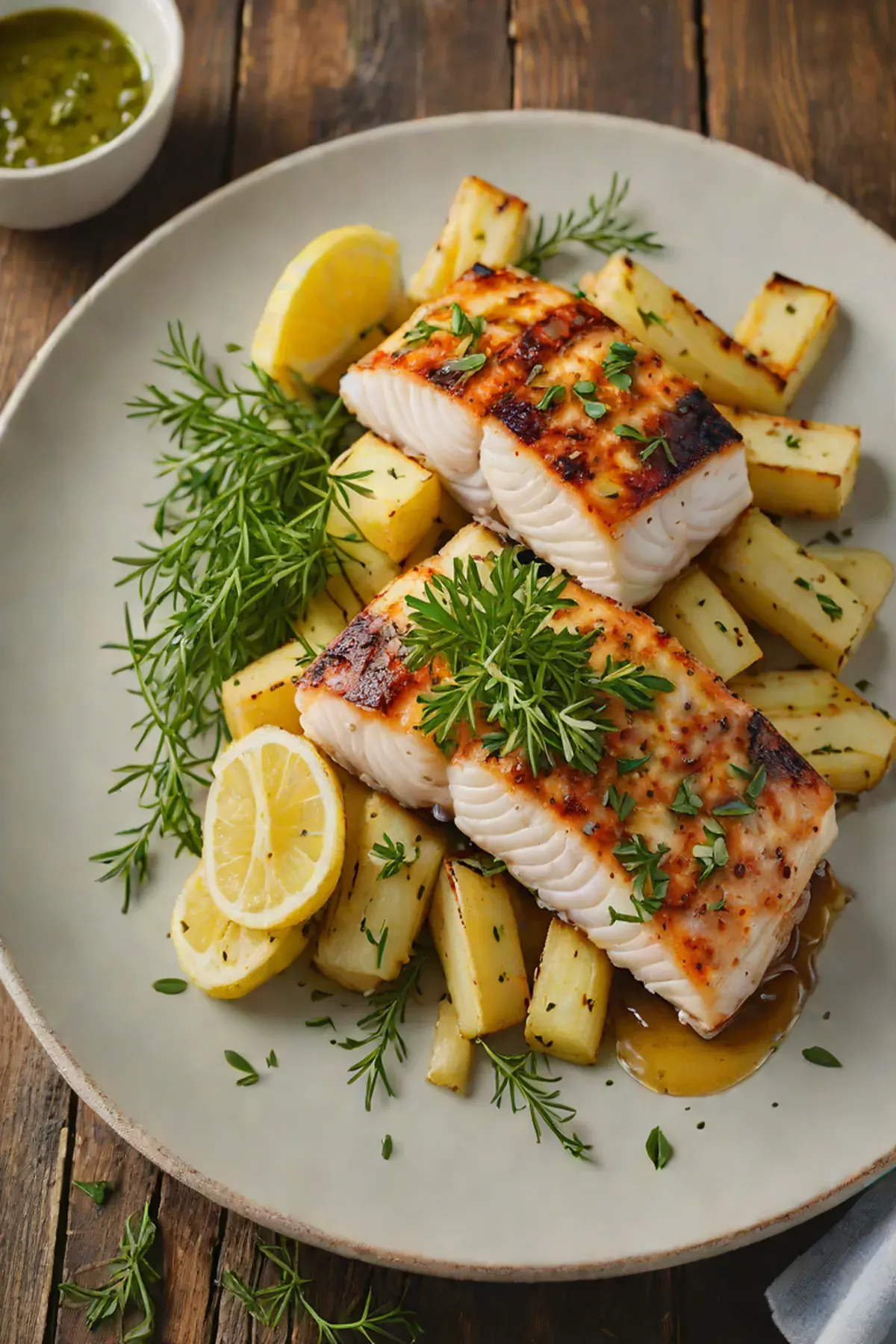 Grilled Cod with Roasted Parsnip and Herb Butter
