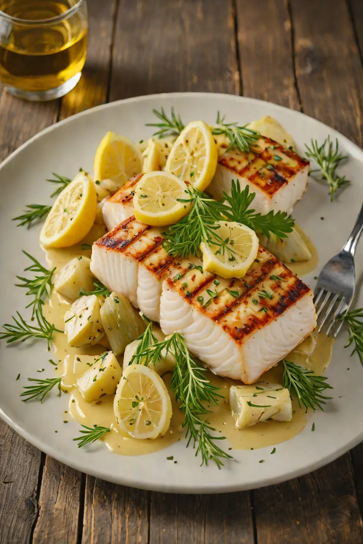 Grilled Halibut with Artichoke and Lemon Beurre Blanc