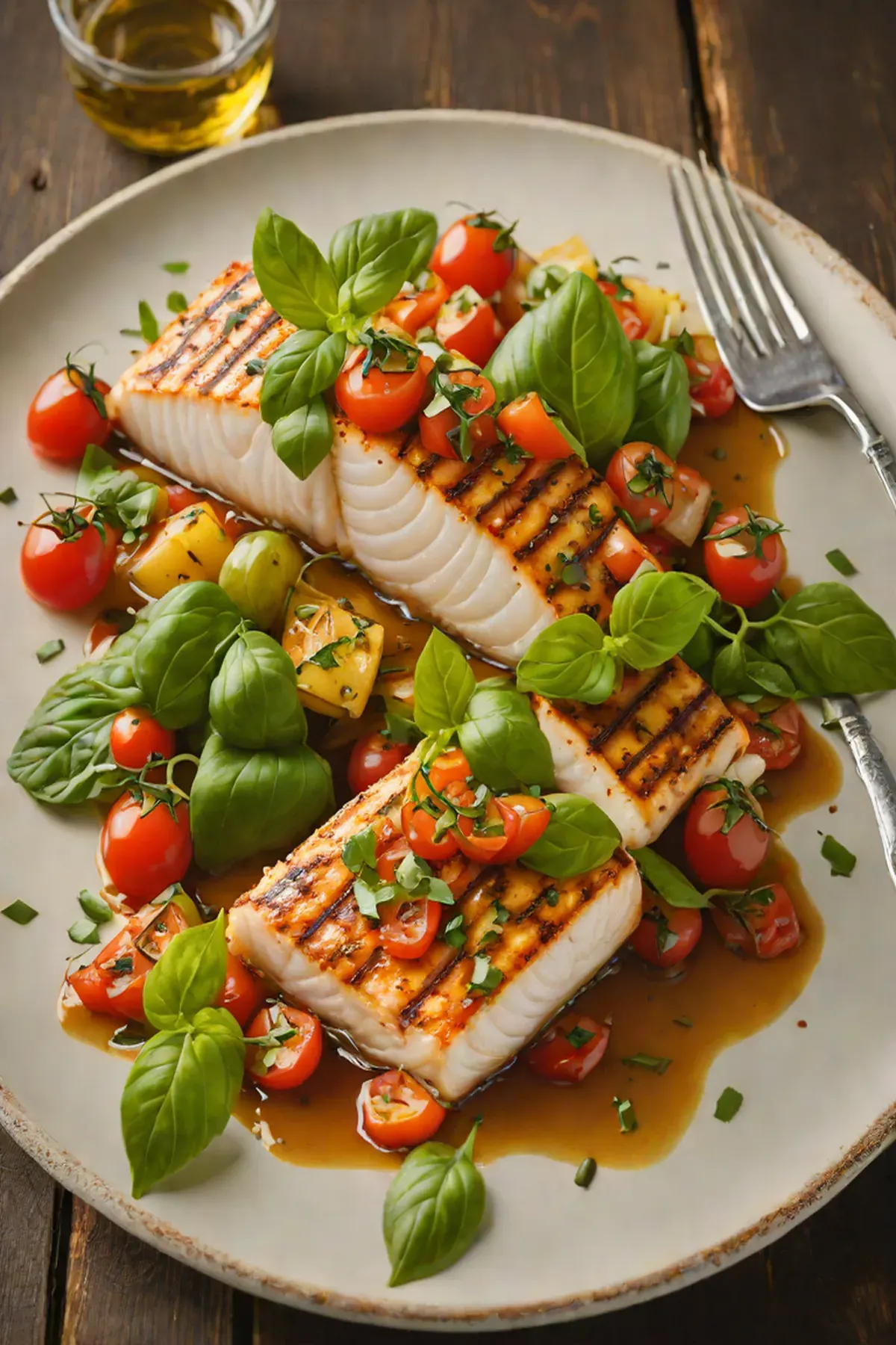 Grilled Halibut with Tomato Confit and Fresh Basil