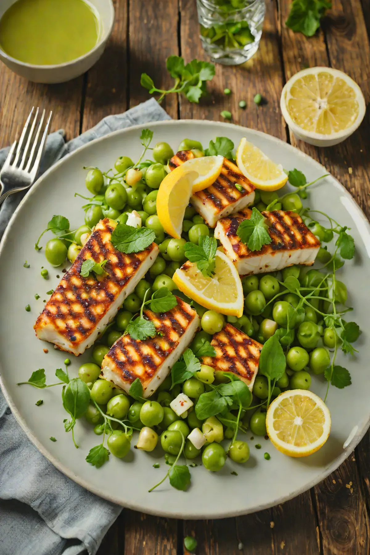 Grilled Halloumi with Pea Salad