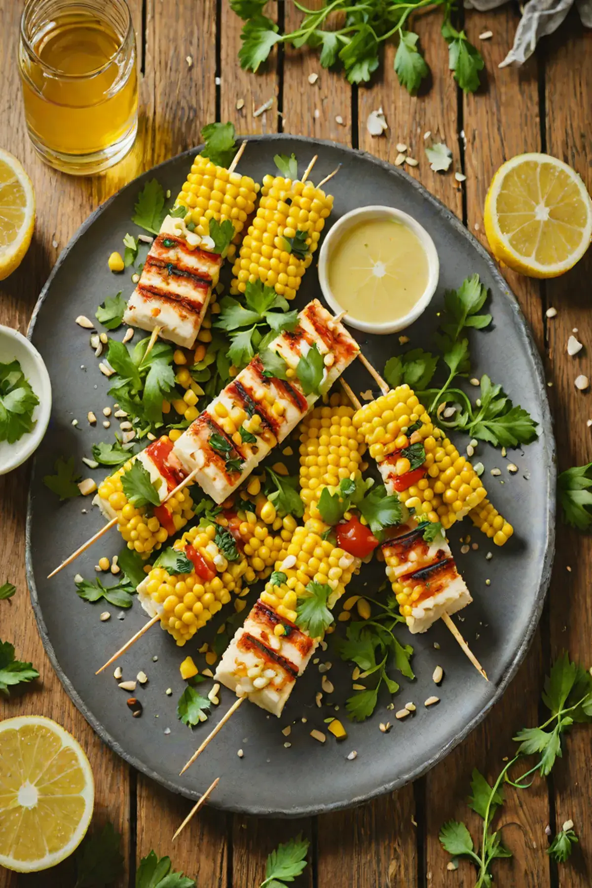 Grilled Halloumi with Sweet Corn Skewers