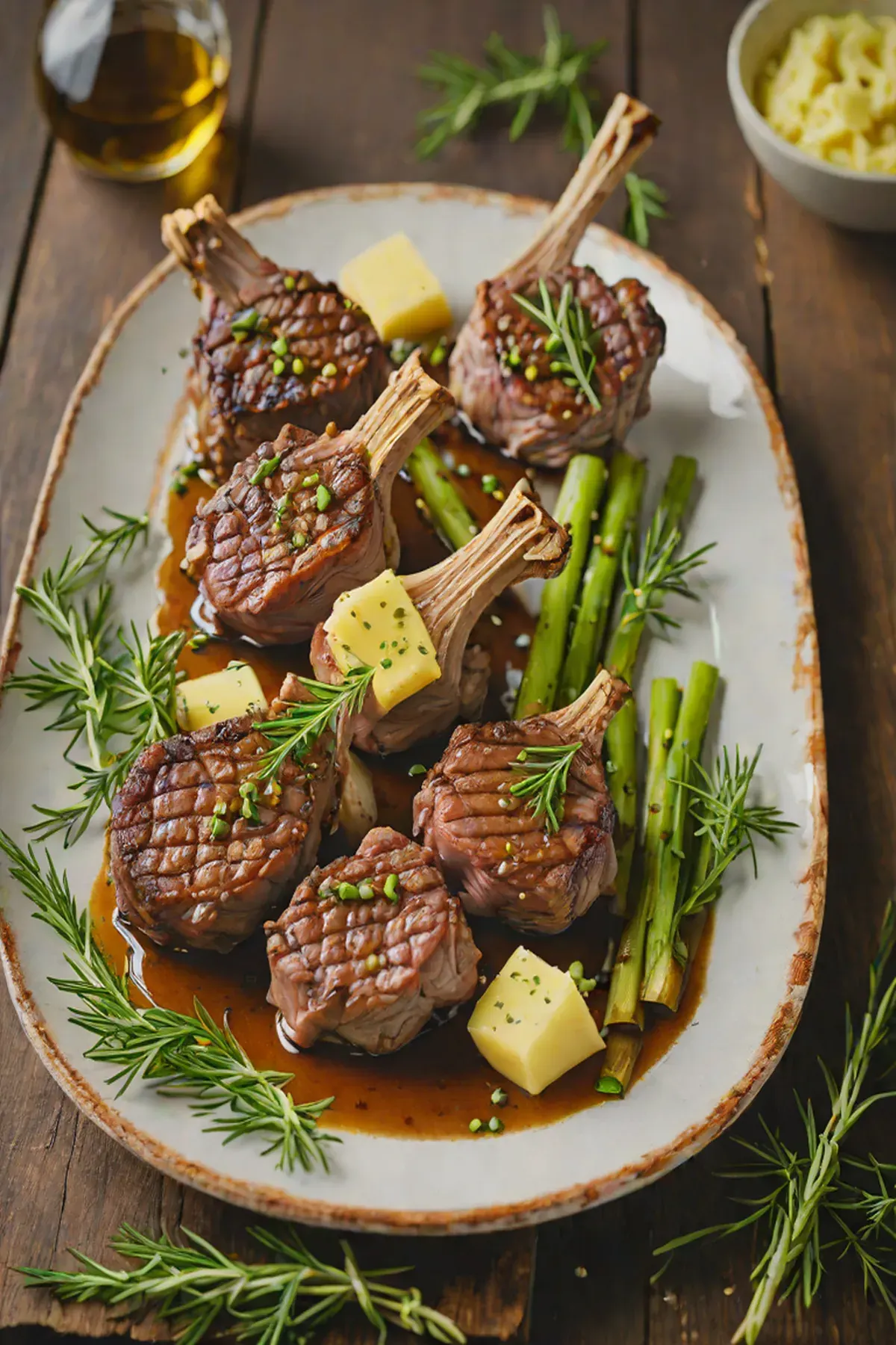 Top each lamb chop with a generous dollop of herb butter and drizzle any pan juices around the plate. Serve immediately with the grilled leeks alongside.