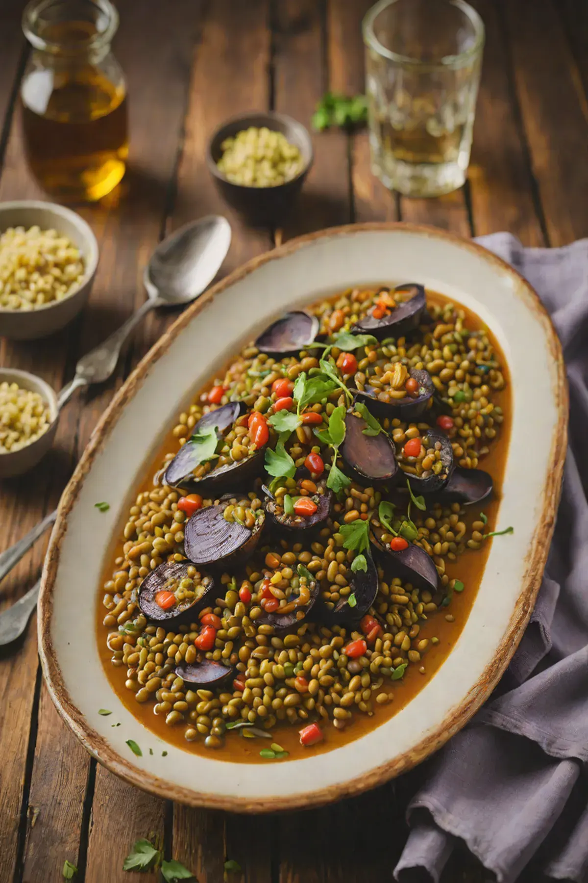 Grilled Lentils with Aubergine