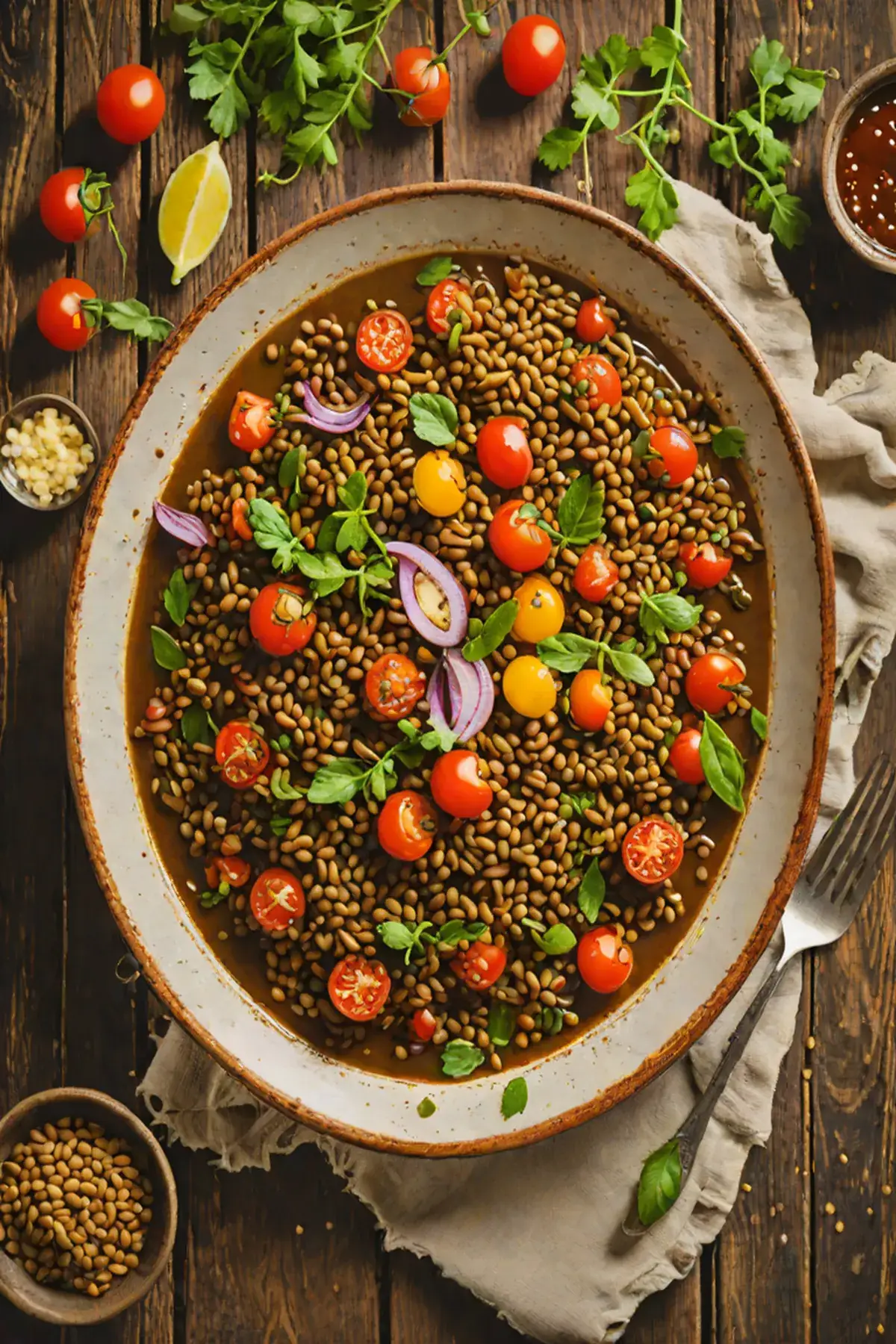 Grilled Lentils with Tomato