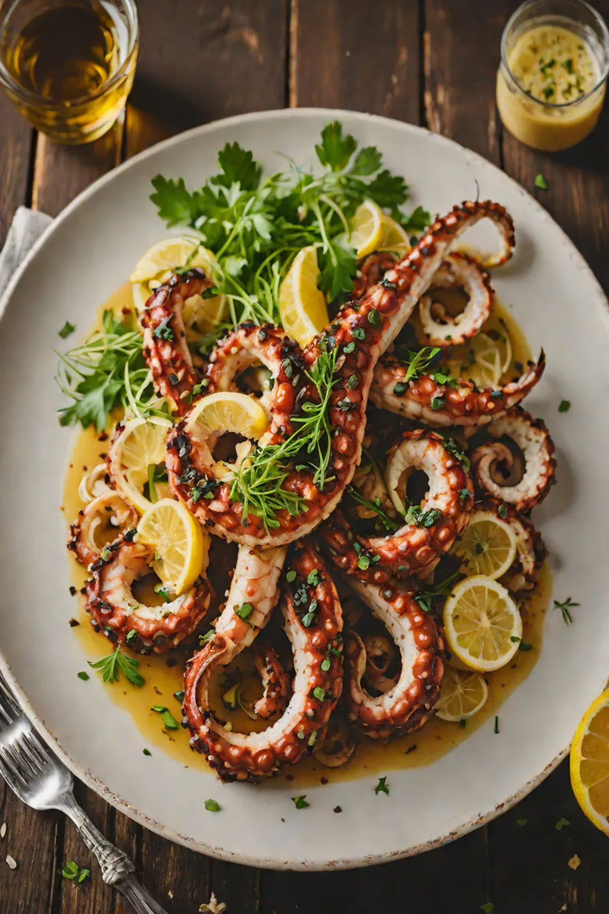 Bring a large pot of salted water to a boil and add the cleaned octopus. Simmer gently for 35-40 minutes until the tentacles are tender and easily pierced with a fork. Remove and let cool slightly, then cut the tentacles into individual pieces.