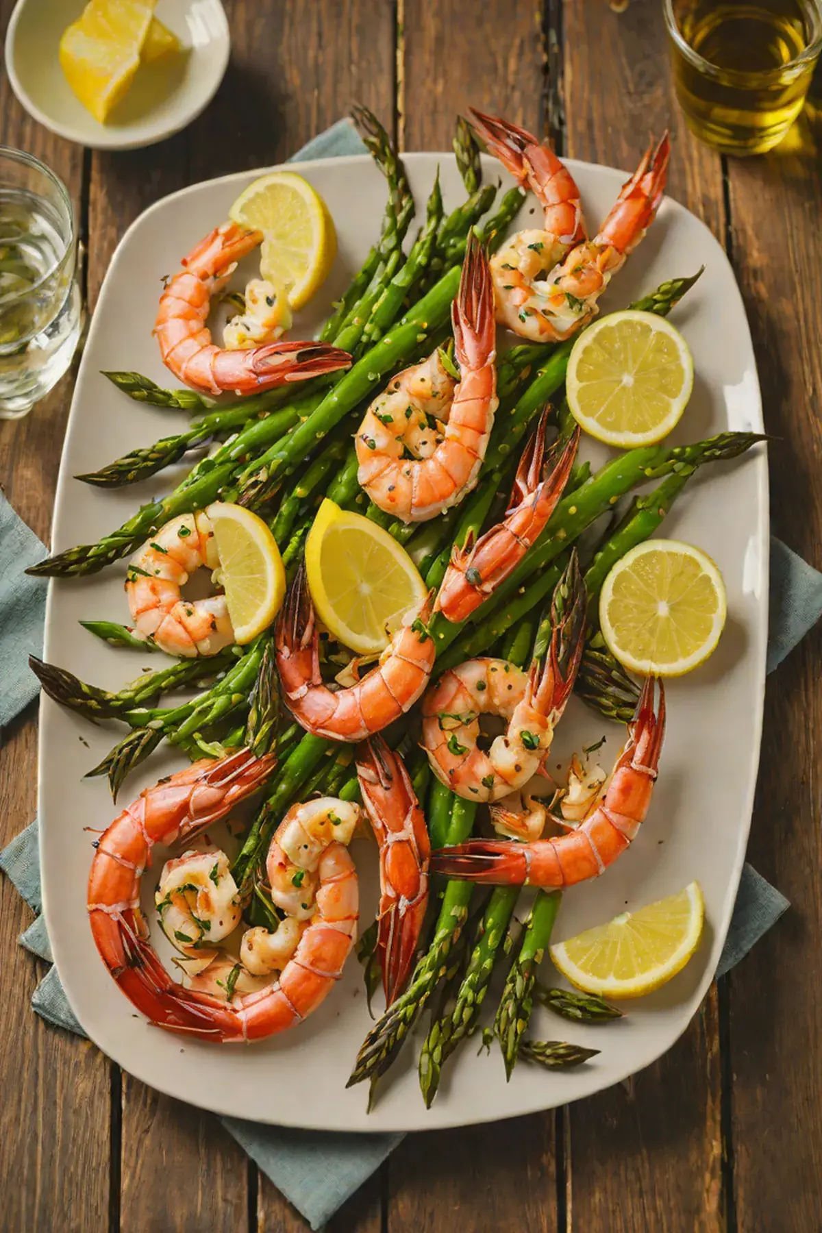 Once asparagus is nearly done, arrange prawns on the grill in a single layer. Grill for 2-3 minutes per side until they turn opaque pink and have slight char marks.