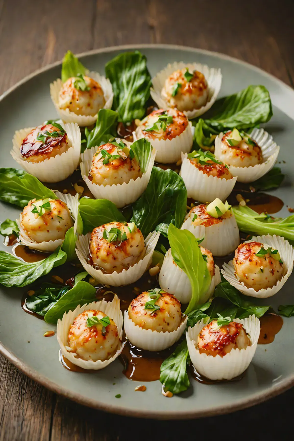 Drizzle the lemon-ginger glaze over the scallops and pak choi, then garnish with toasted sesame seeds and additional lemon zest for brightness.