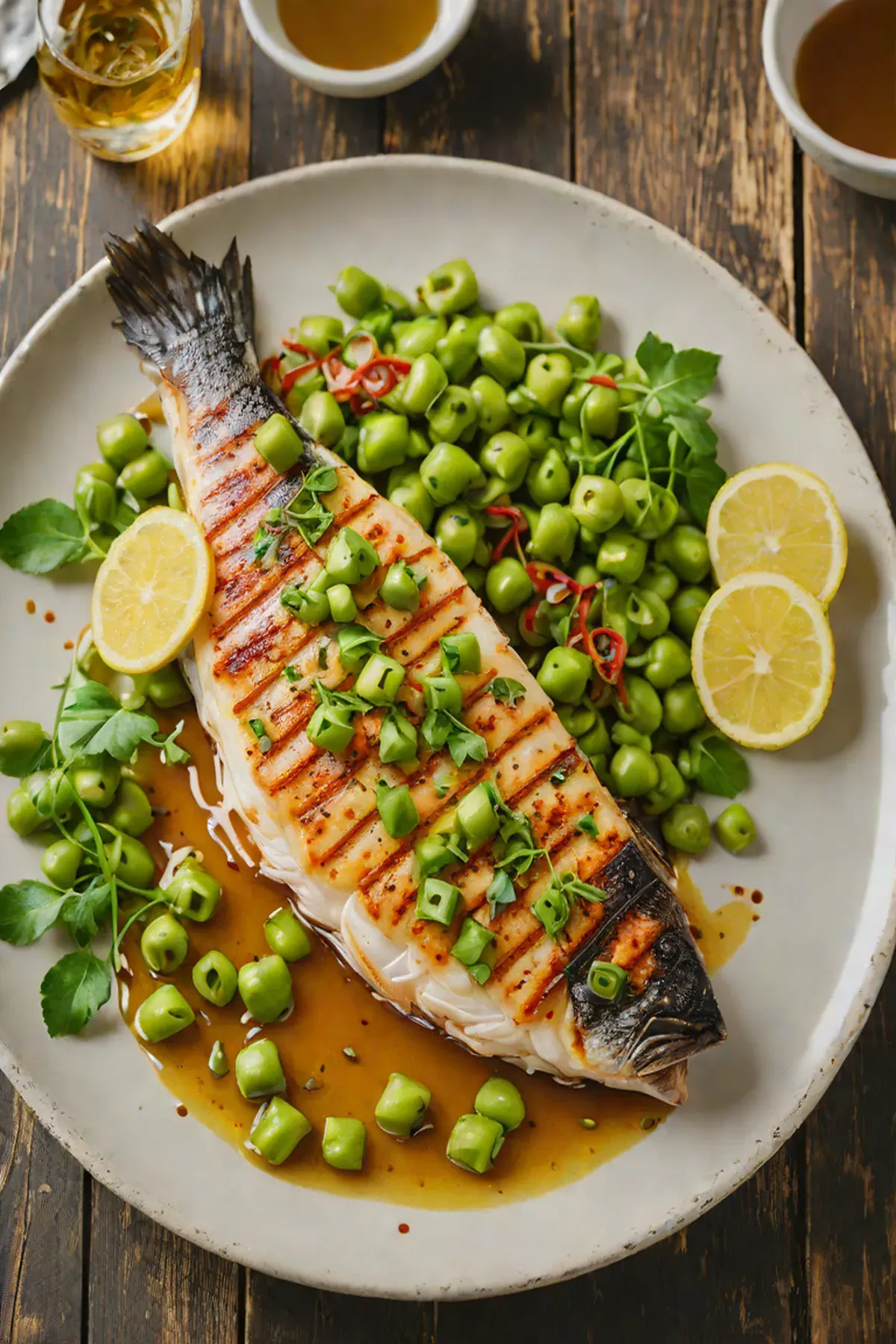 Grilled Sea Bass with Edamame