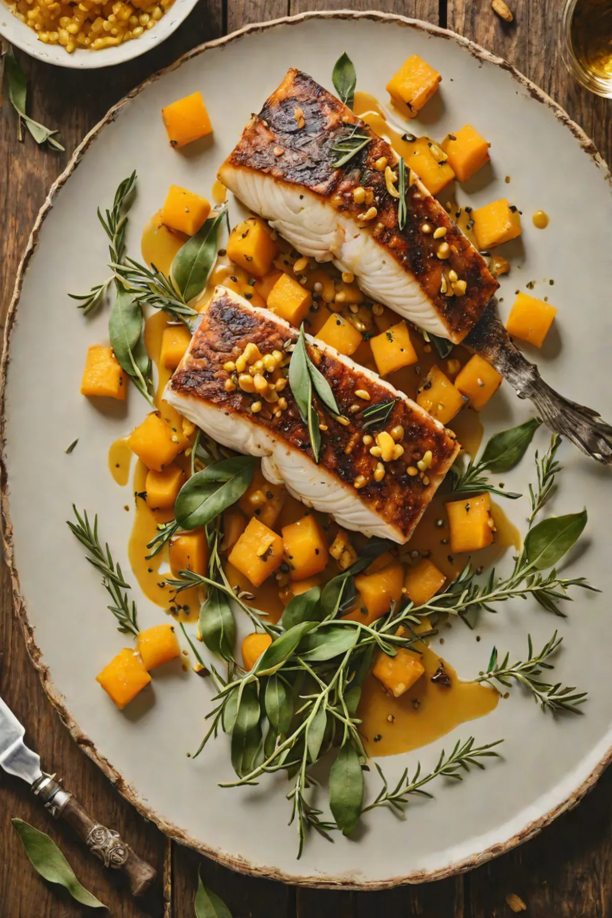 Grilled Sea Bass with Roasted Pumpkin and Sage Brown Butter