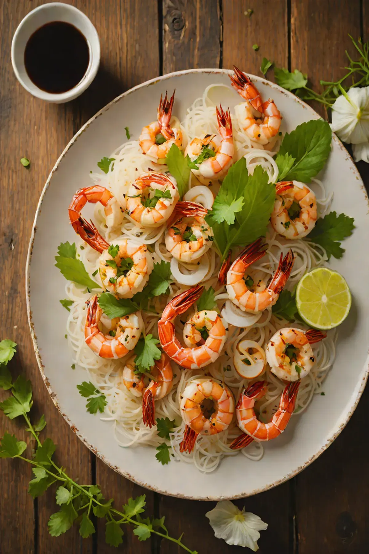 Tip: Warm shrimp will slightly soften the raw daikon noodles, creating a pleasant textural contrast.