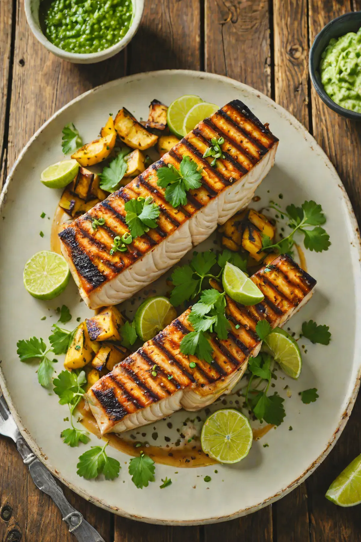 Grilled Swordfish with Plantain and Cilantro-Lime Sauce