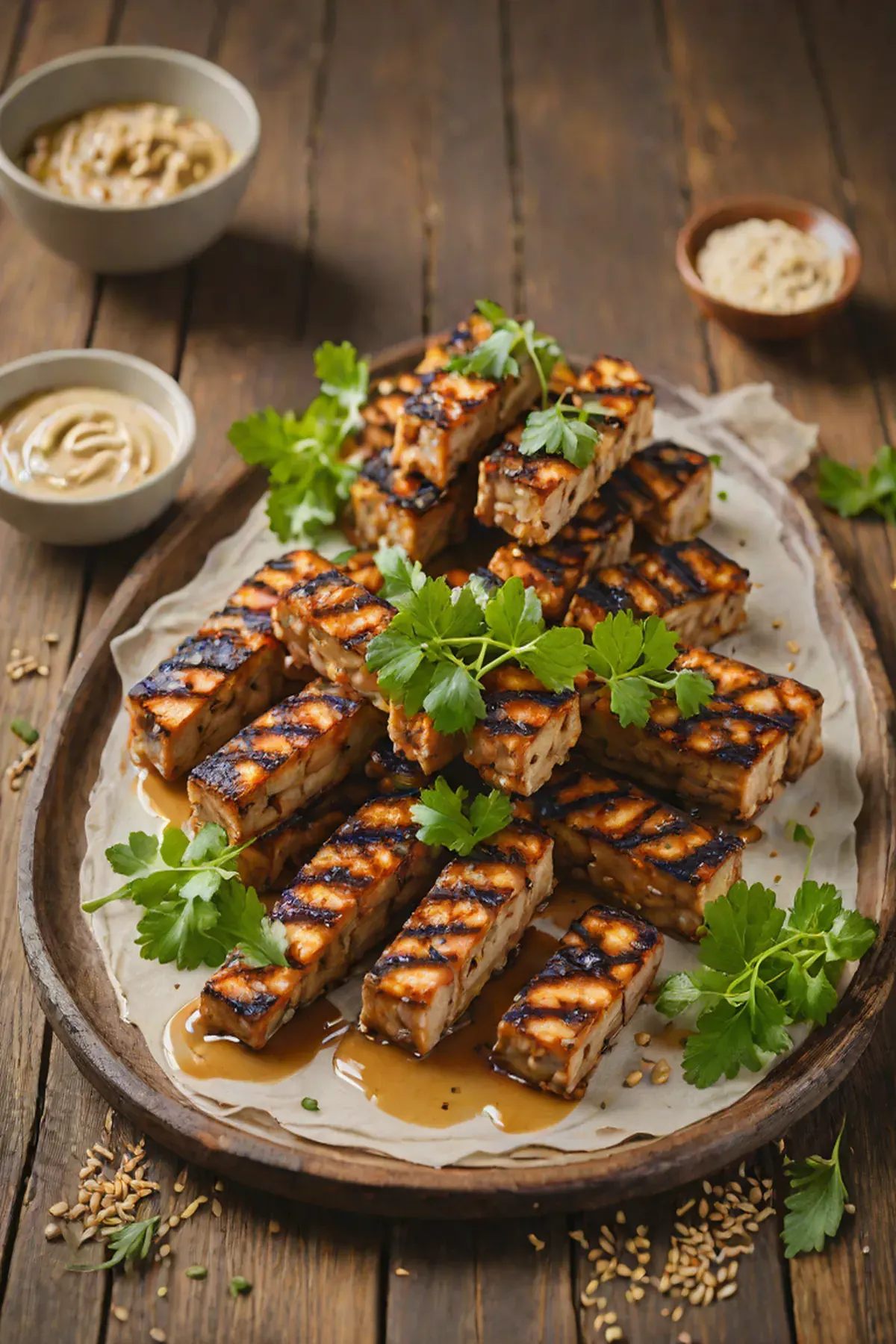 Tip: The tempeh will develop a nutty flavor and firm exterior with proper grilling.