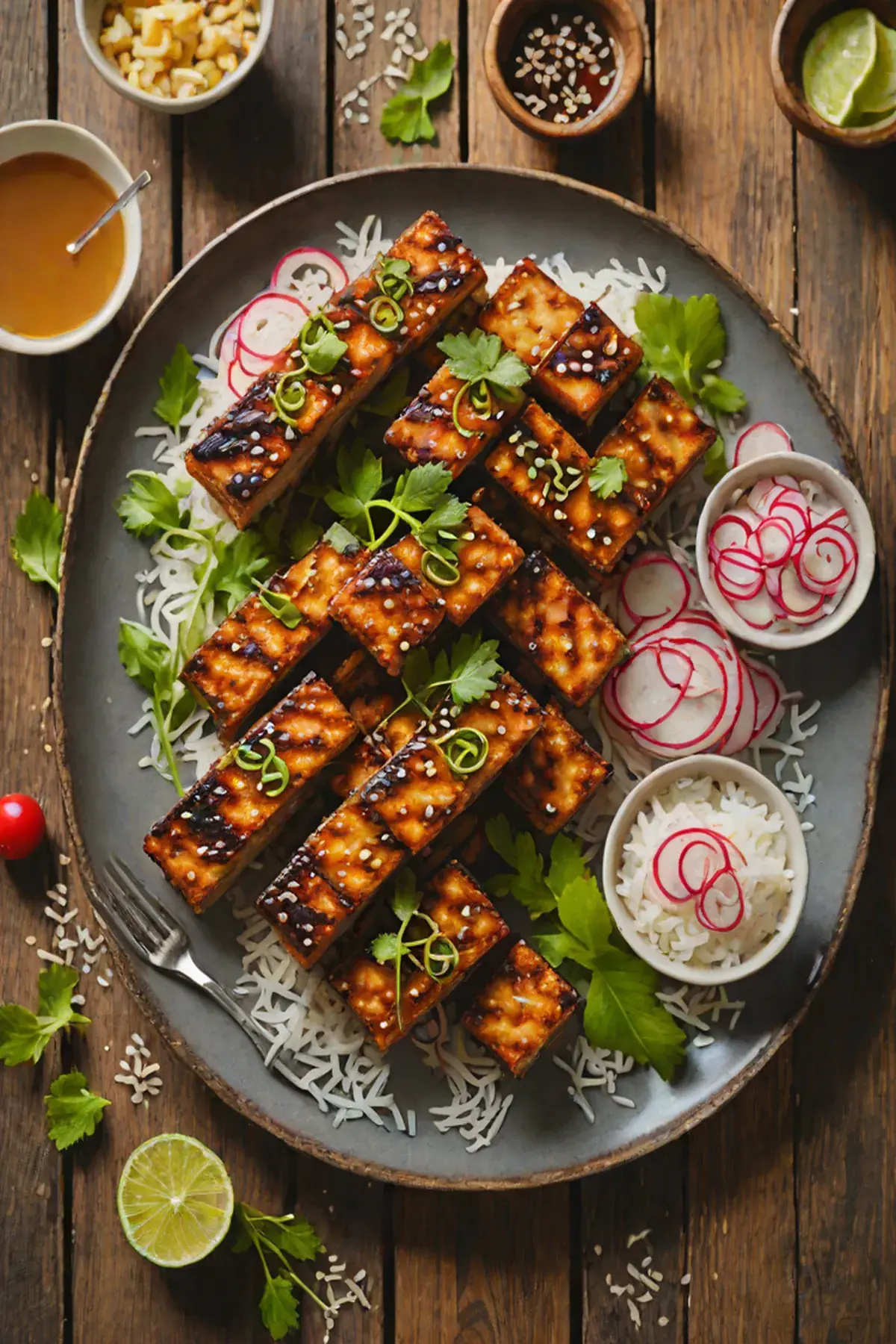 Grilled Tempeh with Radish and Miso-Ginger Glaze