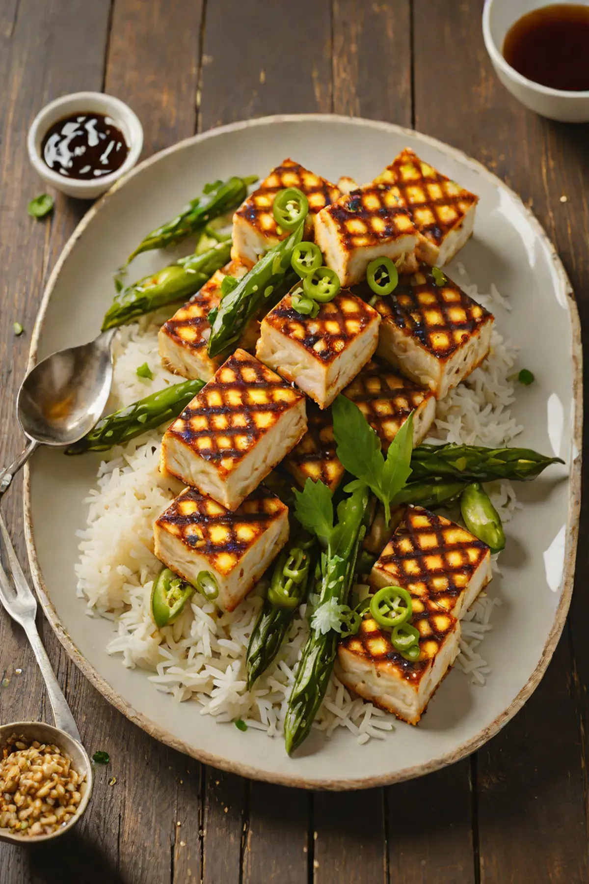 - 2 blocksextra-firm tofu(pressed and cut into 1-inch thick slabs)