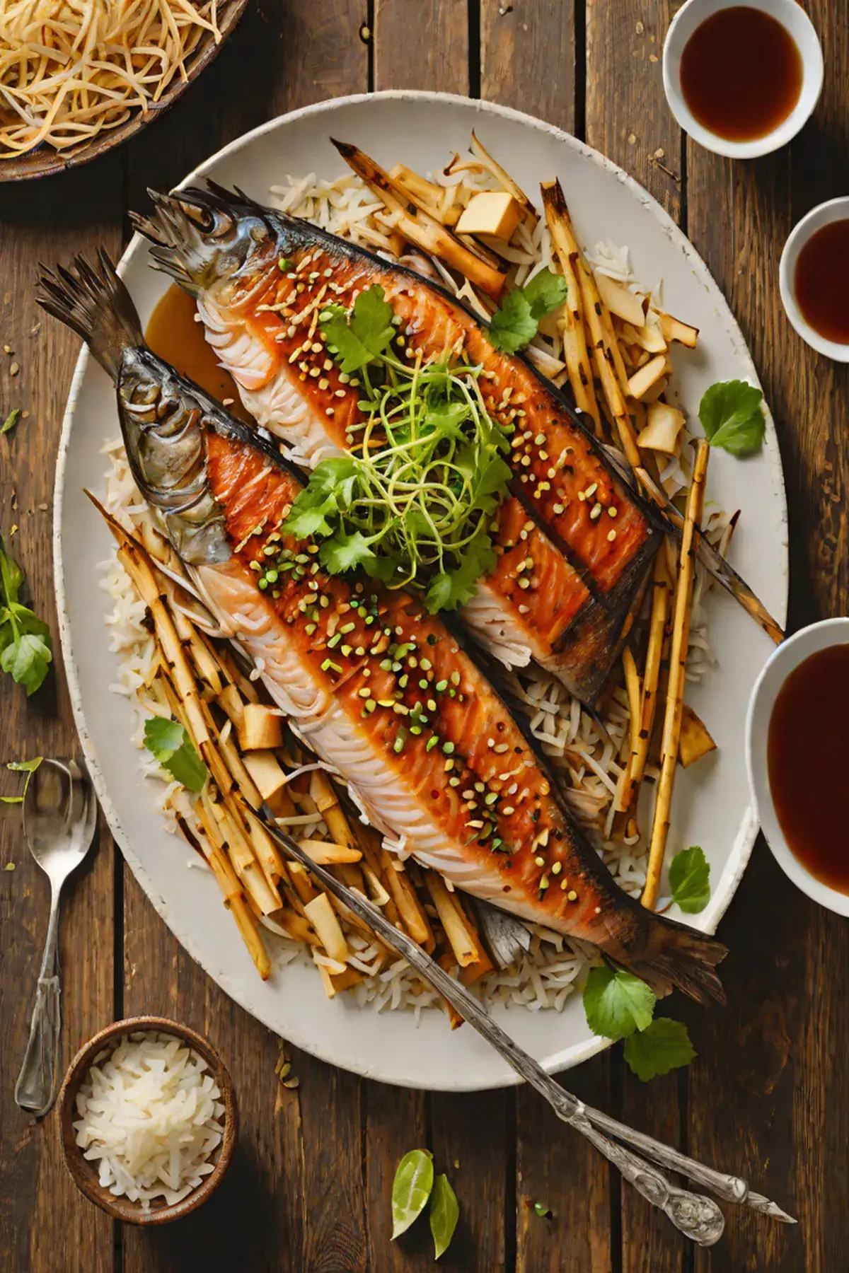 Grilled Trout with Bamboo Shoot and Ginger-Soy Glaze