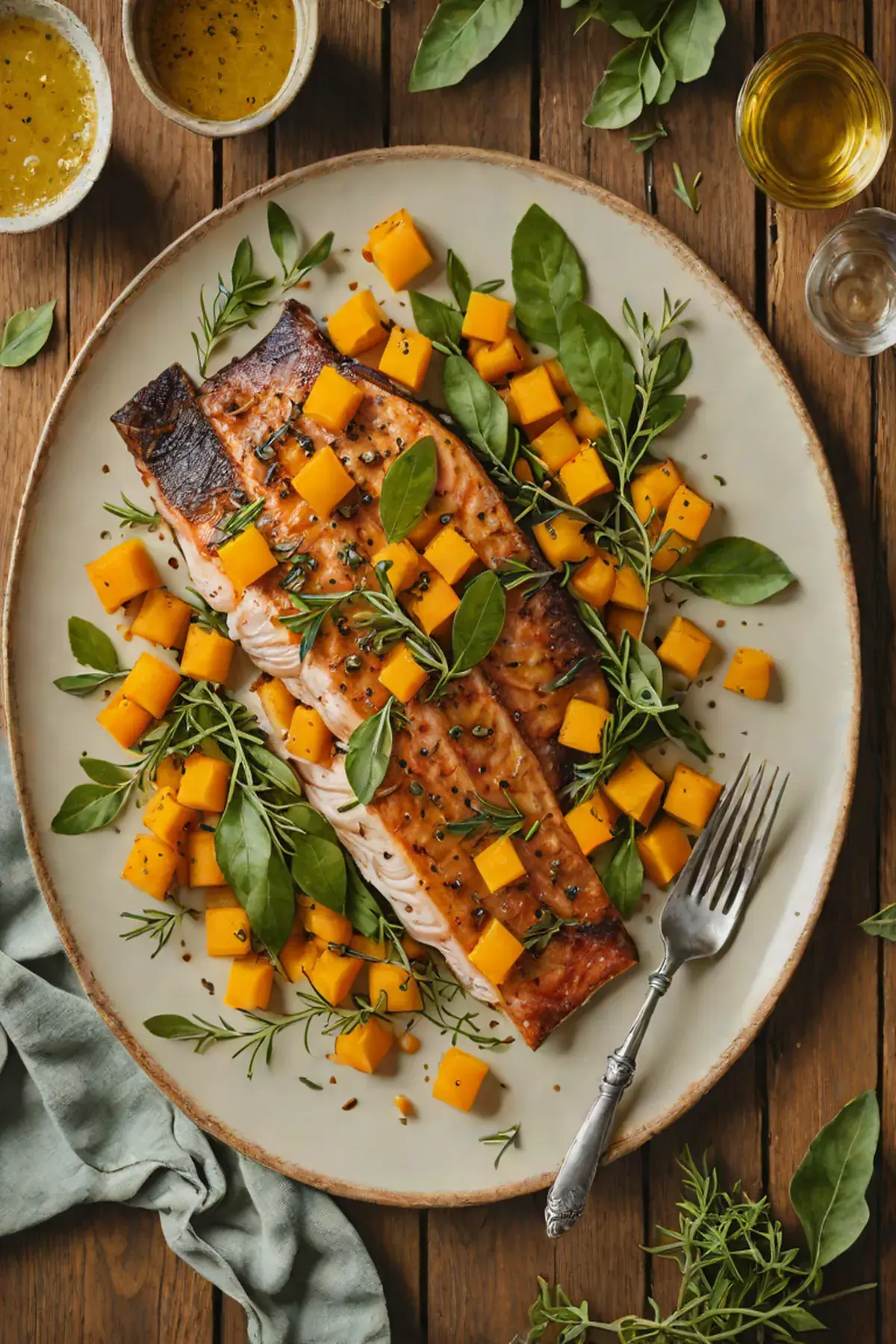 Transfer the grilled squash to a serving platter and carefully place the trout fillets on top or alongside. Drizzle the warm sage brown butter sauce over everything, reserving a few crispy sage leaves for garnish.