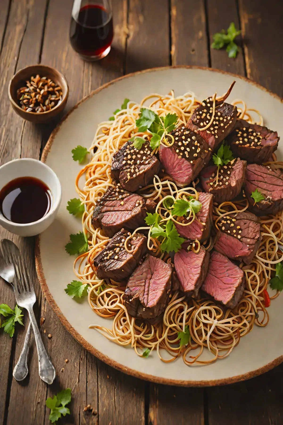 Grilled Venison with Bean Sprout Stir-fry