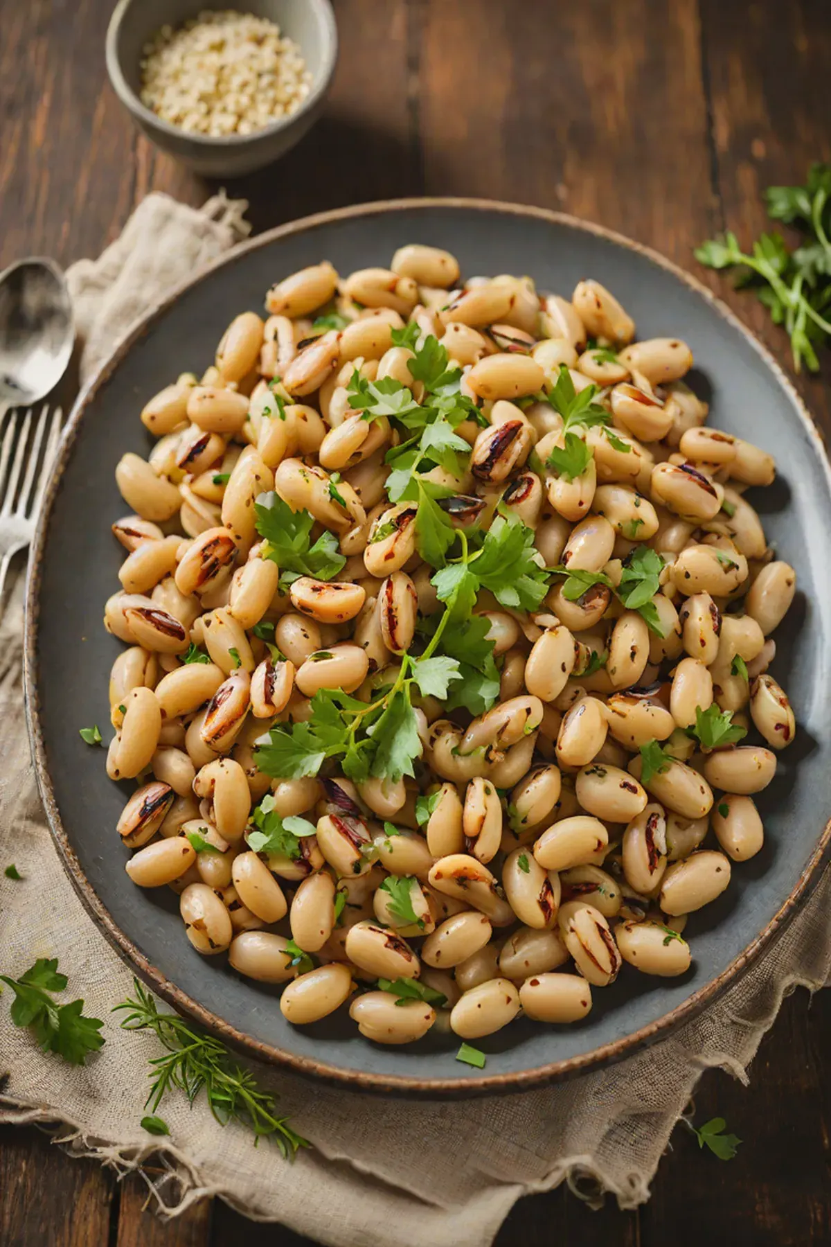 Grill for 10-12 minutes, turning occasionally, until the beans are tender and the garlic is fragrant.