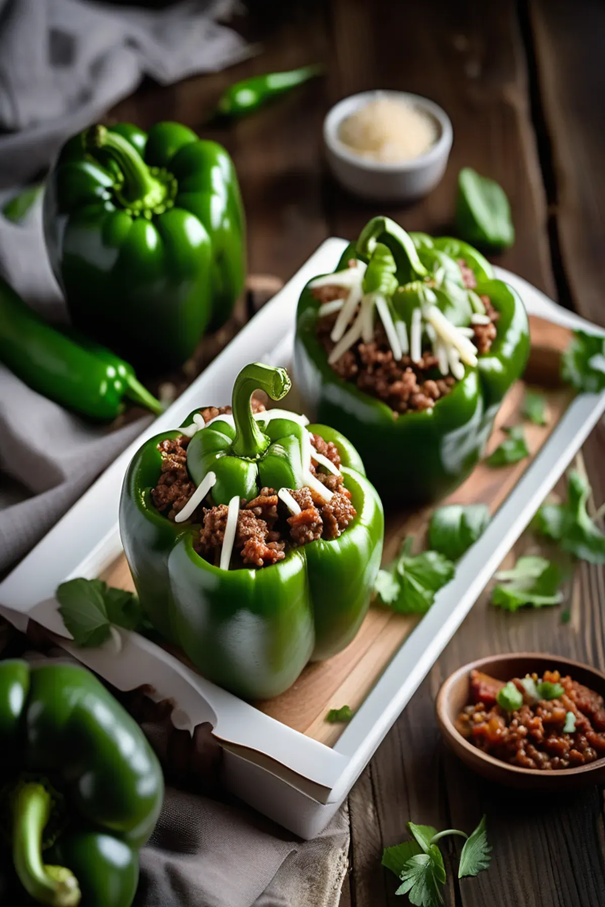 Ground Beef Stuffed Green Bell Peppers With Cheese