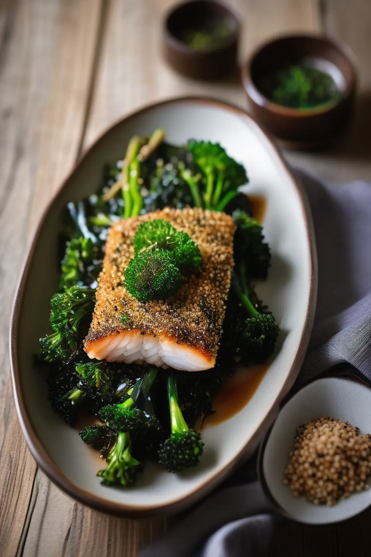 This is one of my favorite weeknight dinners because it comes together in just thirty minutes and feels far more impressive than the effort requires. Fresh hake fillets get a wonderful crispy coating from panko breadcrumbs mixed with aonori seaweed, which adds an umami depth and a boost of iodine to support thyroid health. I serve it alongside nutty soba noodles and vibrant purple sprouting broccoli, all dressed in a light sesame vinaigrette that ties everything together beautifully. It's the kind of simple, wholesome meal that makes you feel like you've really cooked something special.