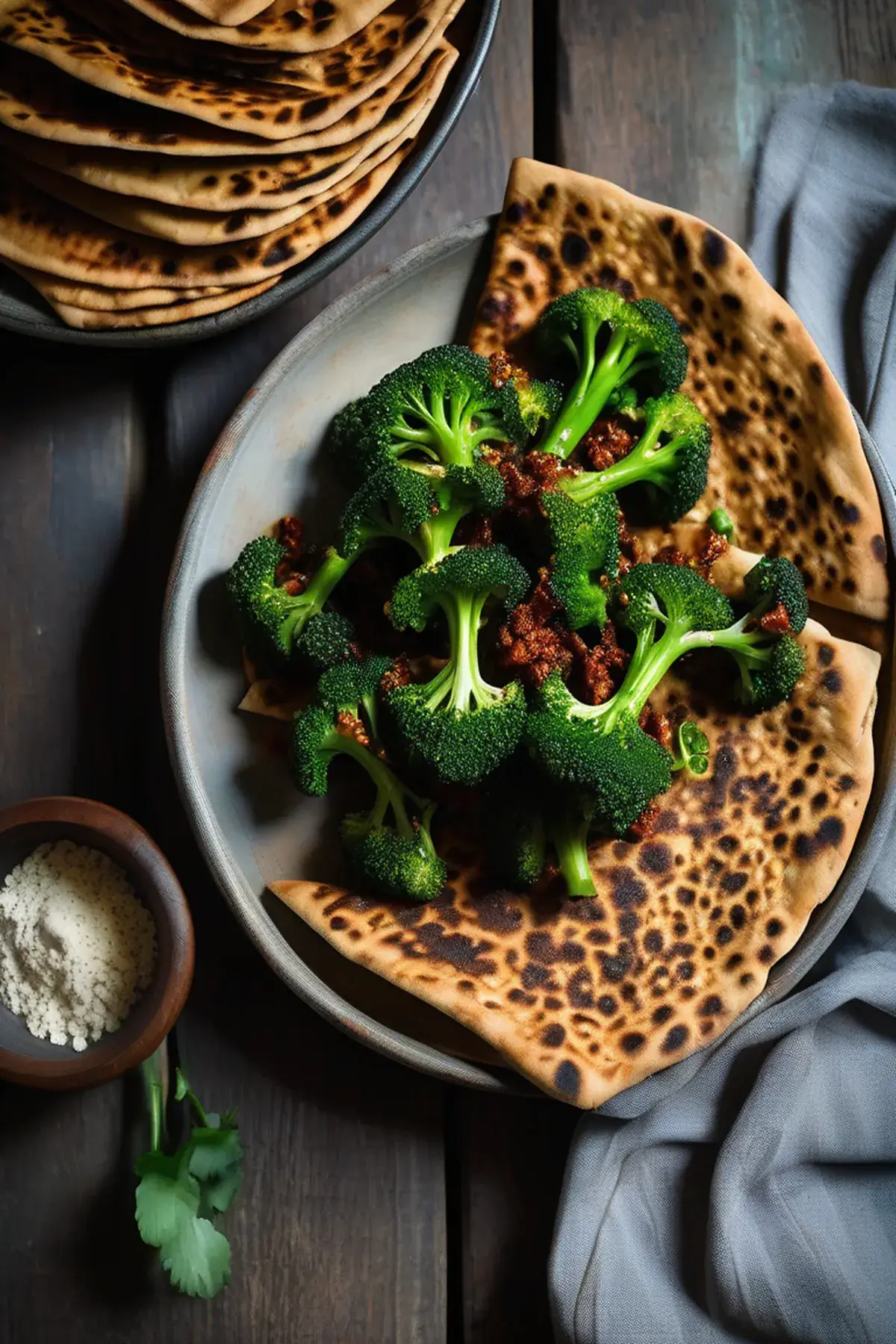 Harissa broccoli & flatbreads