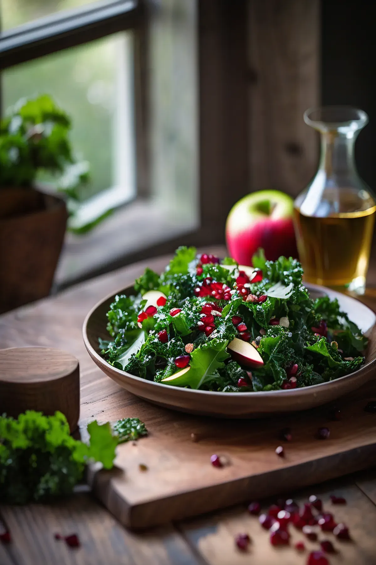 This is one of my favorite go to salads because it comes together in just 15 minutes with zero cooking required. The combination of crisp Honeycrisp apples, nutrient dense kale, and jewel like pomegranate seeds creates something that feels fancy but is surprisingly simple to make. Kale is packed with vitamins and minerals that support your immune system, and the fresh lemon and thyme dressing brings everything to life with bright, herbaceous flavors. It's the kind of salad that tastes like you spent way more effort than you actually did.