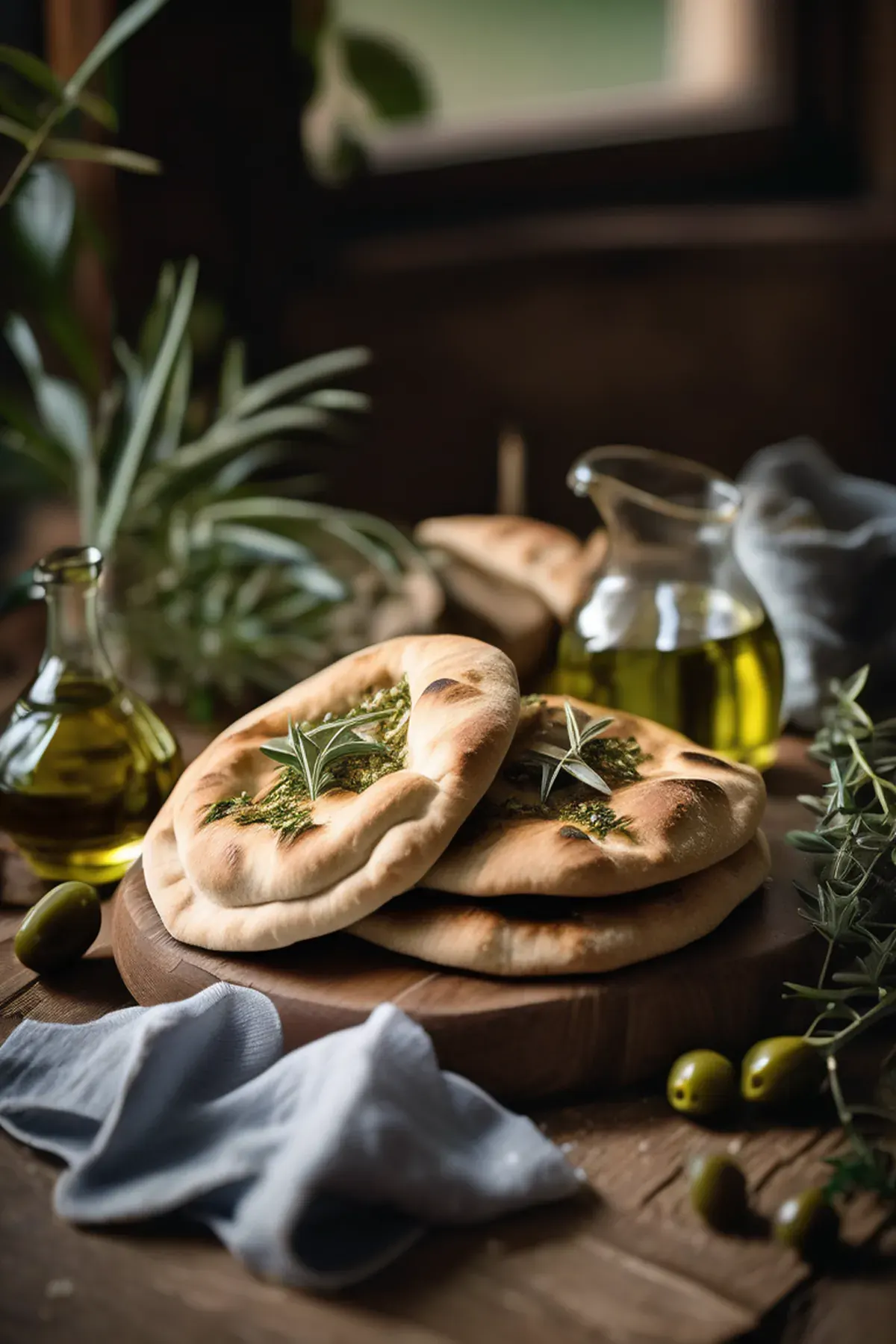 Soft, pillowy pita bread with a subtle herbal flavor and a touch of olive oil, perfect for wraps, dips, or alongside any meal.