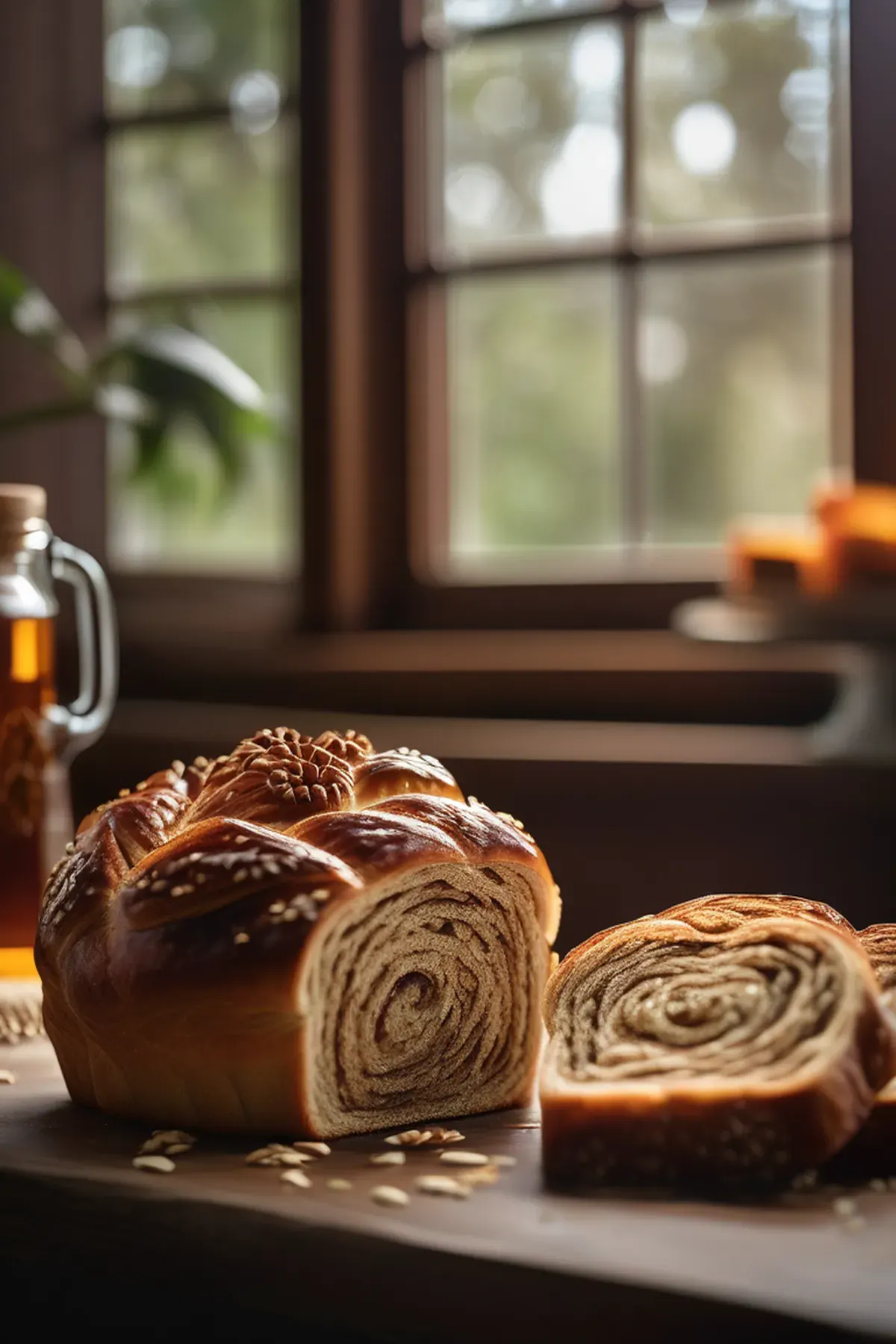 Whisk the reserved egg with 1 tablespoon water and brush generously over the braided loaf. Sprinkle with sesame seeds and oats.