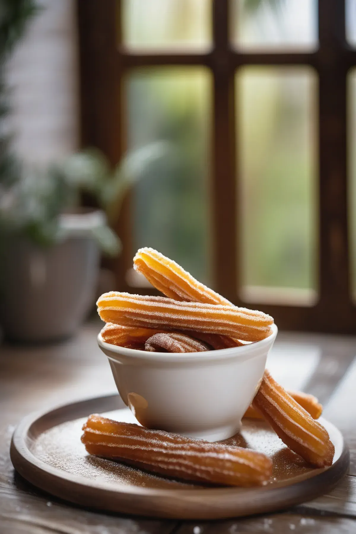 Fry the churros for 2-3 minutes on each side, until they are golden brown and puffed up.