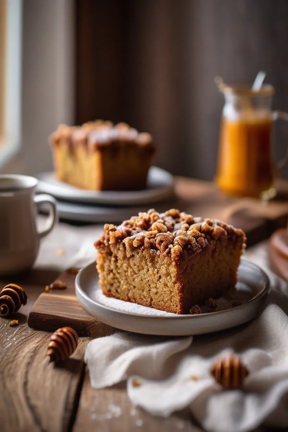 A moist and flavorful coffee cake with a hint of honey, perfect for breakfast or a snack.