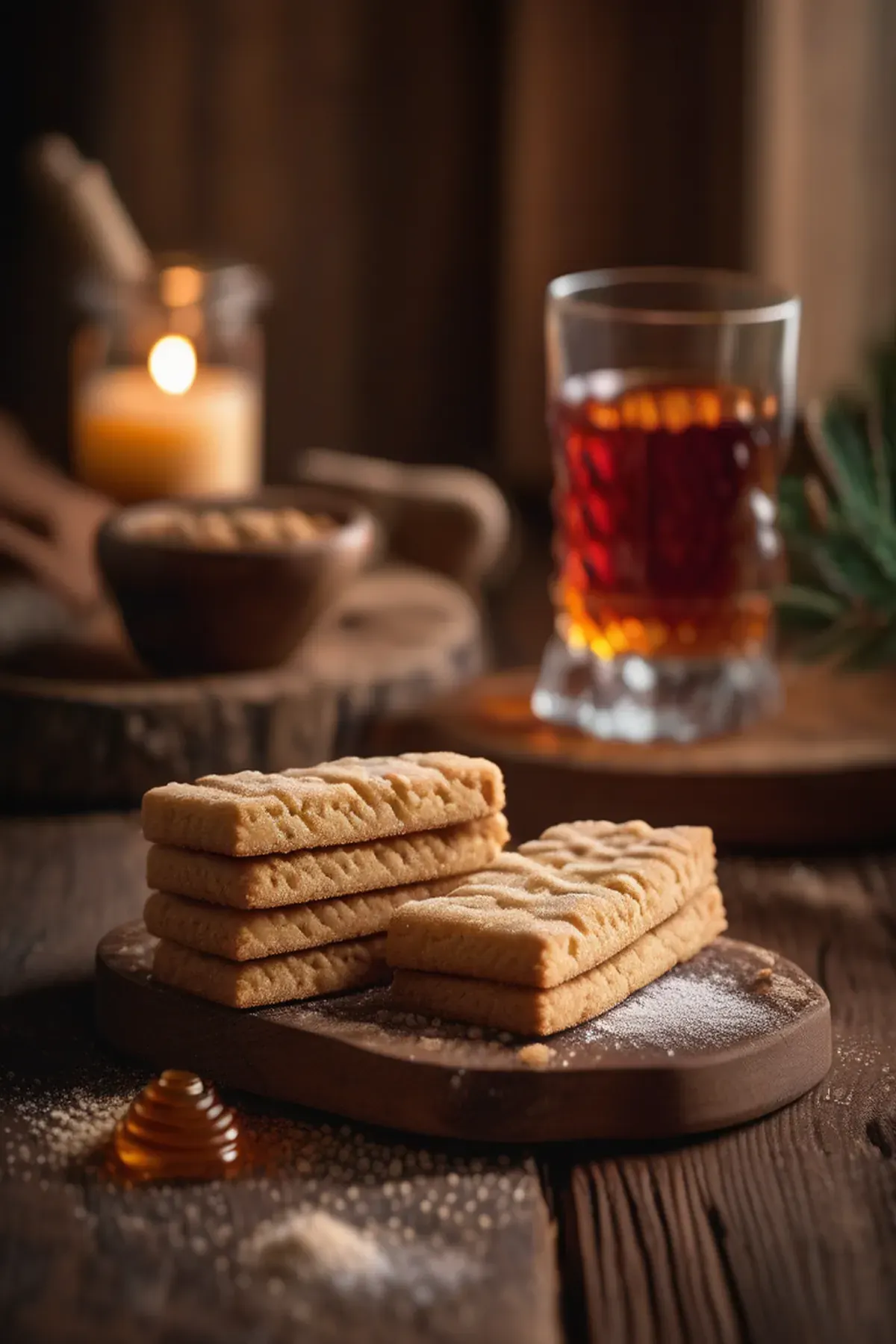 Buttery, honey-sweetened shortbread with a crumbly texture and a hint of Scottish charm.