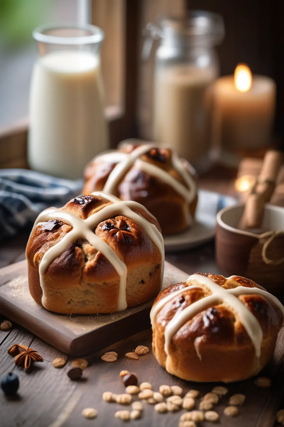 These hot cross buns are one of my favorite ways to start Easter morning, and I love sharing this recipe because it's honestly simpler than you'd think. The whole wheat flour adds wonderful fiber and nutrition that keeps you satisfied longer, so these aren't just delicious, they're actually good for you. What really makes this recipe shine is how quickly you can have fresh, fragrant buns on your table in under an hour. The warm spices like cinnamon and nutmeg fill your kitchen with such a cozy aroma, and the dried fruit makes each bite special without requiring any fussy preparation. Trust me, once your family tastes these warm from the oven, you'll be making them year round.