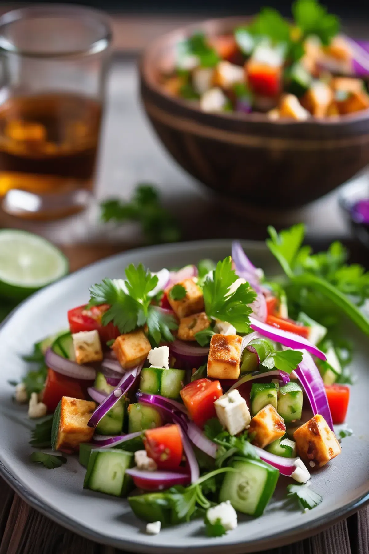 A refreshing and flavorful salad made with paneer, vegetables, and a zesty dressing.