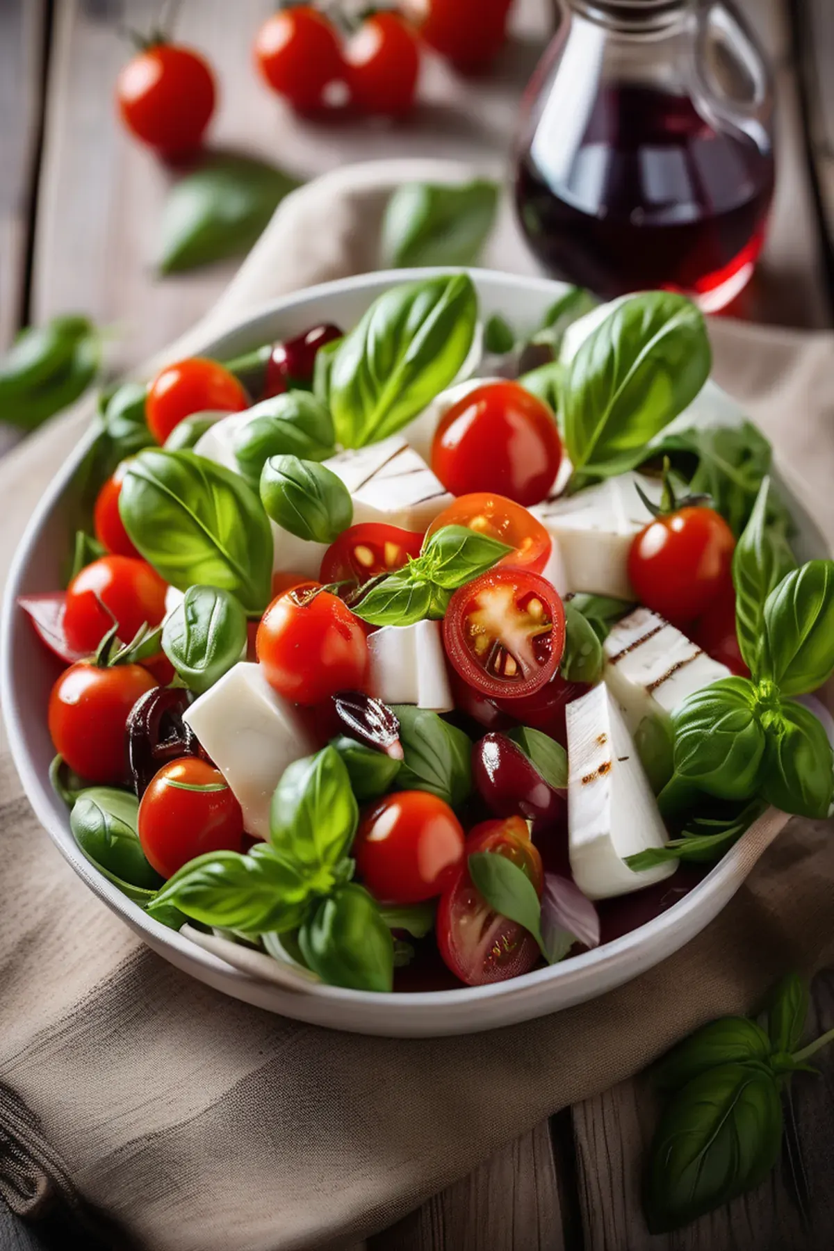 A refreshing Italian salad featuring creamy mozzarella, juicy tomatoes, and crunchy basil, perfect for a quick and easy meal.