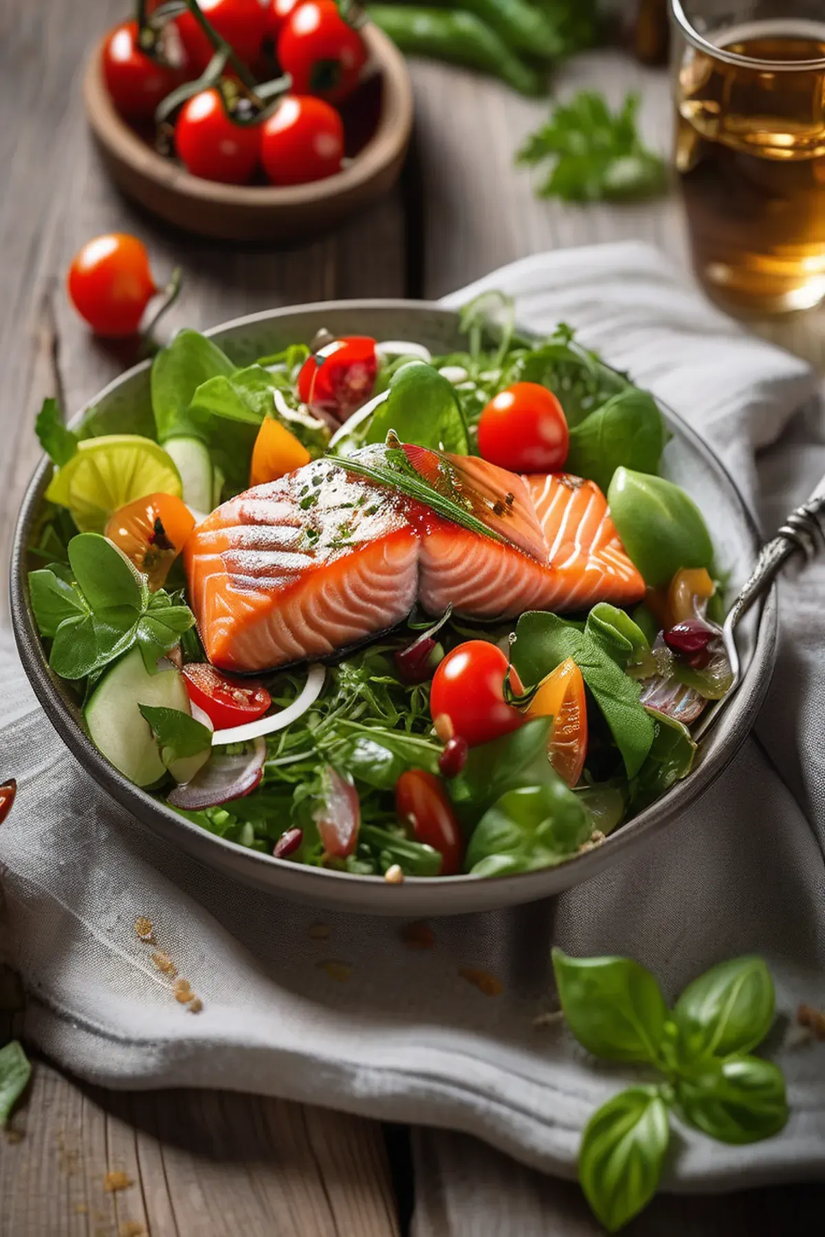 A refreshing salad of Italian salmon, mixed greens, and tangy Italian dressing.
