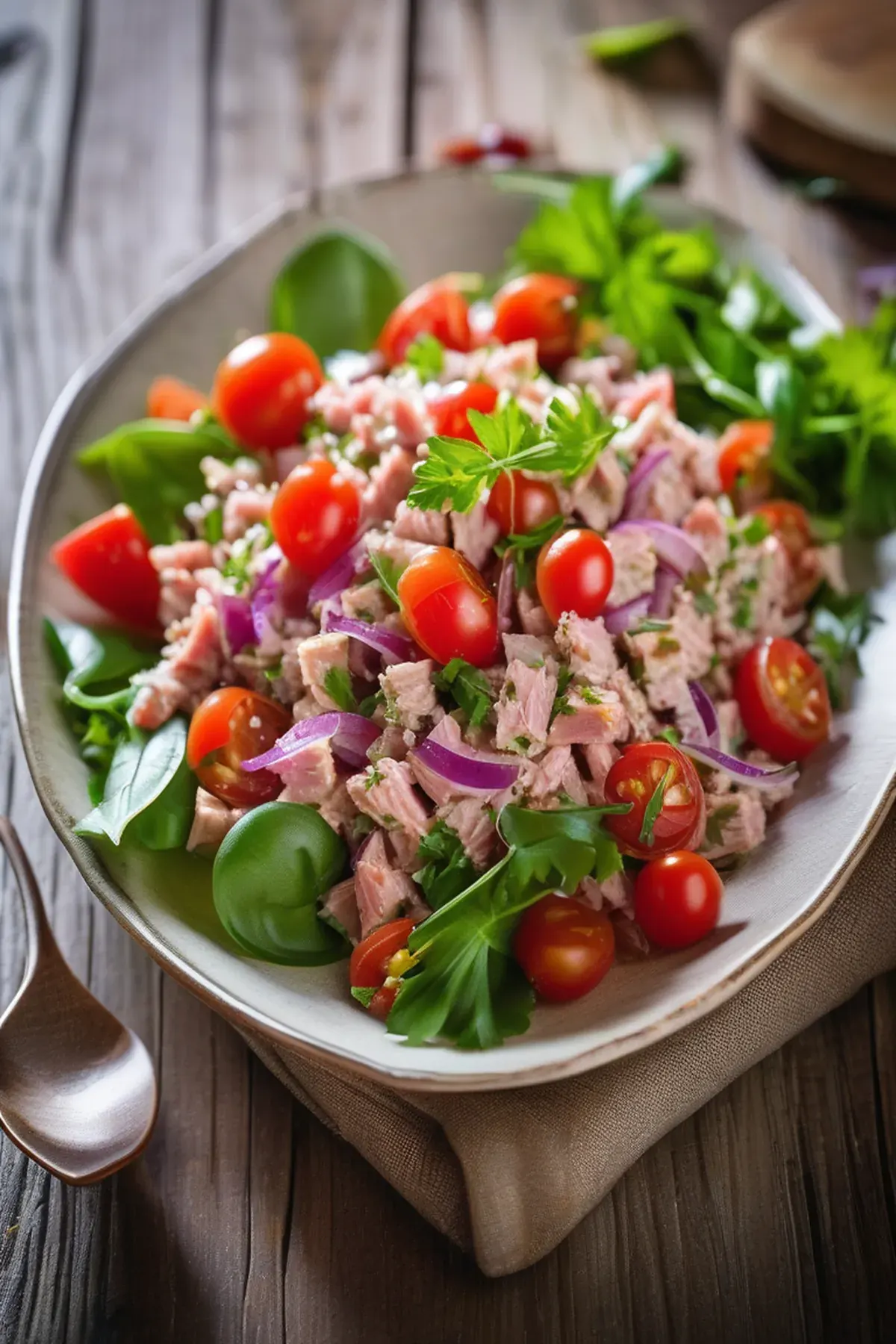 A refreshing and flavorful salad made with tuna, cherry tomatoes, and a tangy Italian dressing.