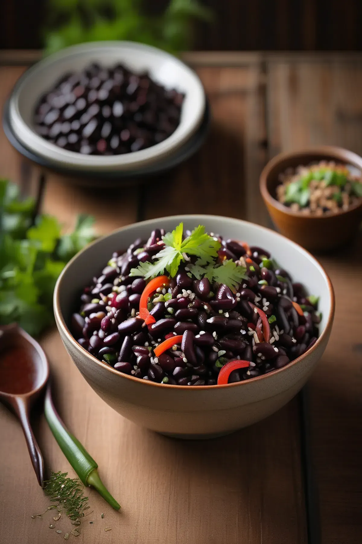 A refreshing salad inspired by Japanese flavors, combining black beans, sesame seeds, and soy sauce.