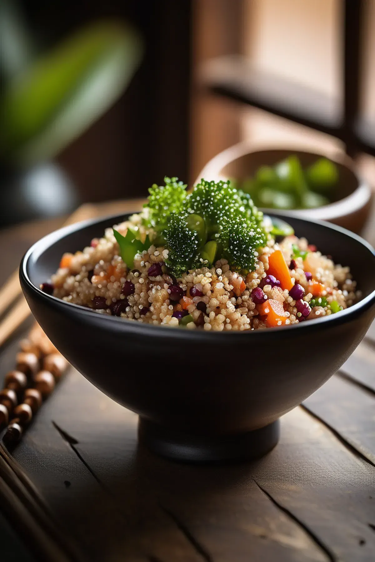 A refreshing and healthy salad inspired by Japanese cuisine, combining quinoa with sweet and savory flavors.